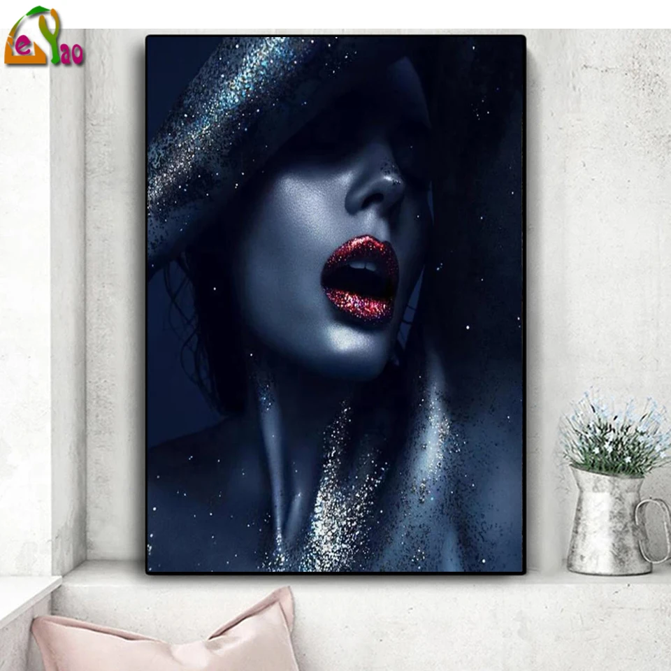 5D Diy Алмазная Картина Сексуальная темная кожа женщина, полная квадратная круглая Алмазная вышивка красные губы вышивка крестиком рукоделие Мозаика Декор