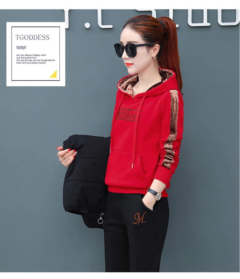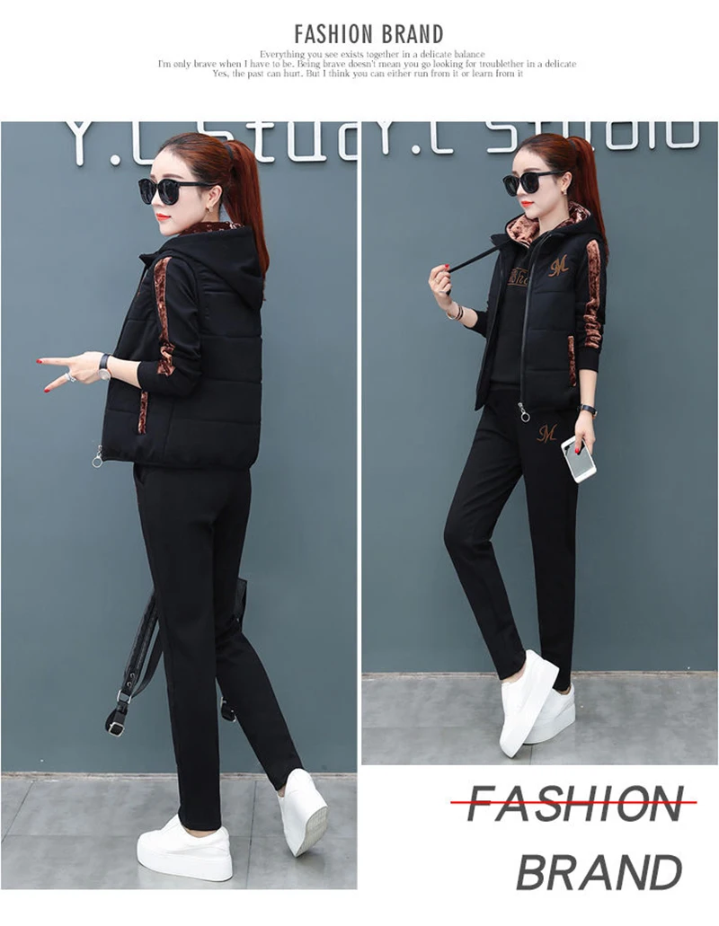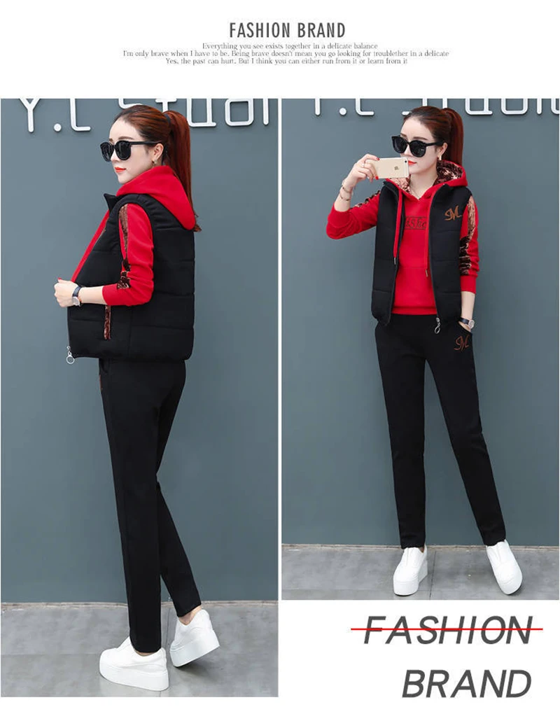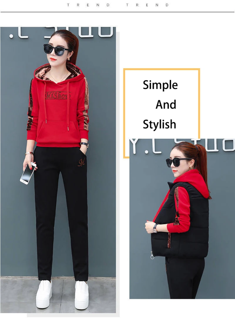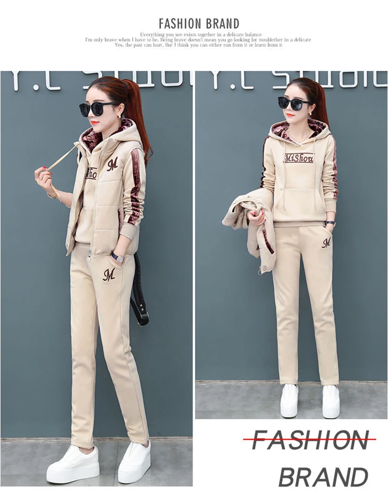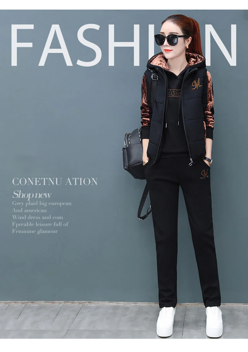 Женский спортивный костюм из 3-х предметов, осенне-зимний спортивный костюм, толстовка + жилет + брюки, повседневный костюм, бархатный теплый спортивный женский комплект, верхняя одежда тёплый костюм женский