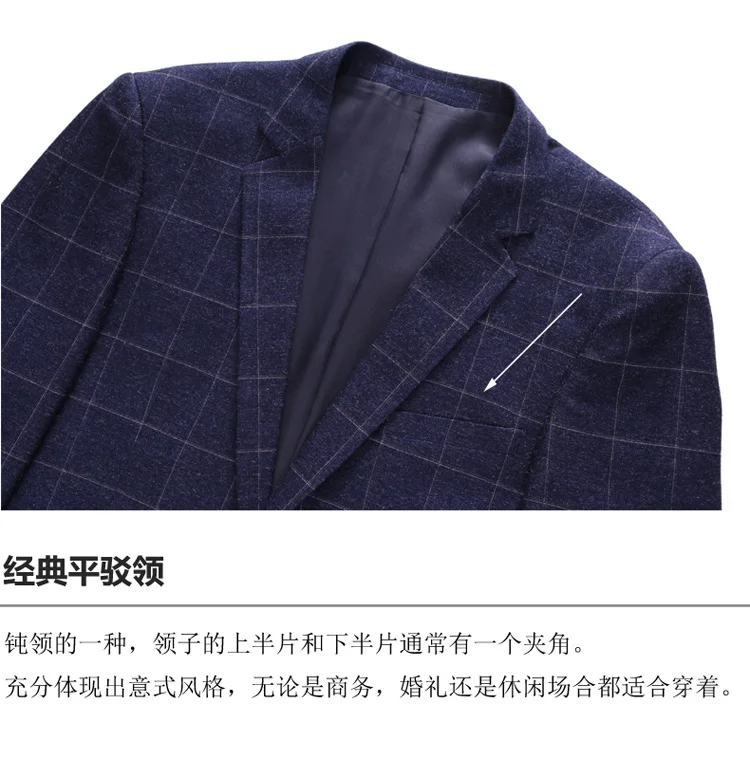 Мужской повседневный блейзер в клетку, темно-синий деловой пиджак в...