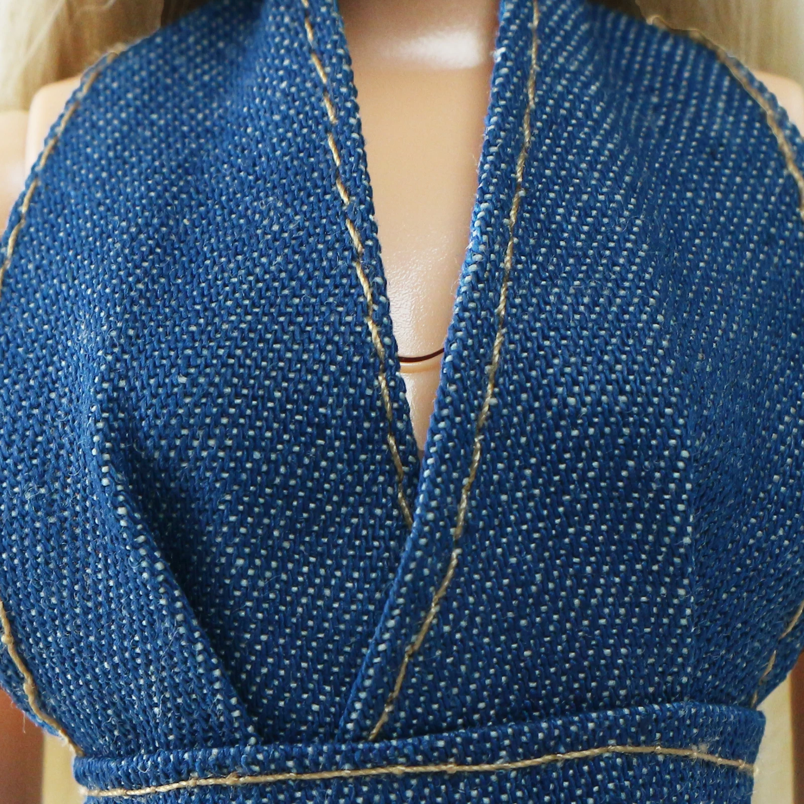 Джинсовое платье с глубоким V-образным вырезом и открытой спиной