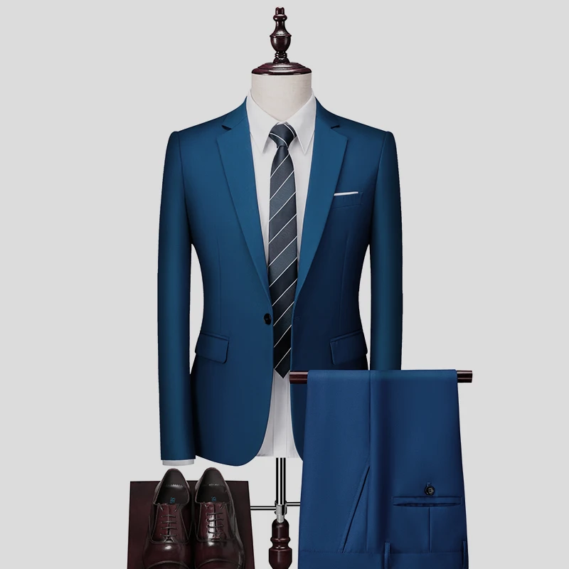 Костюм мужской из 2 предметов, блейзер и брюки, классическое Деловое платье для жениха, свадебное платье, бриджи, костюм 6XL