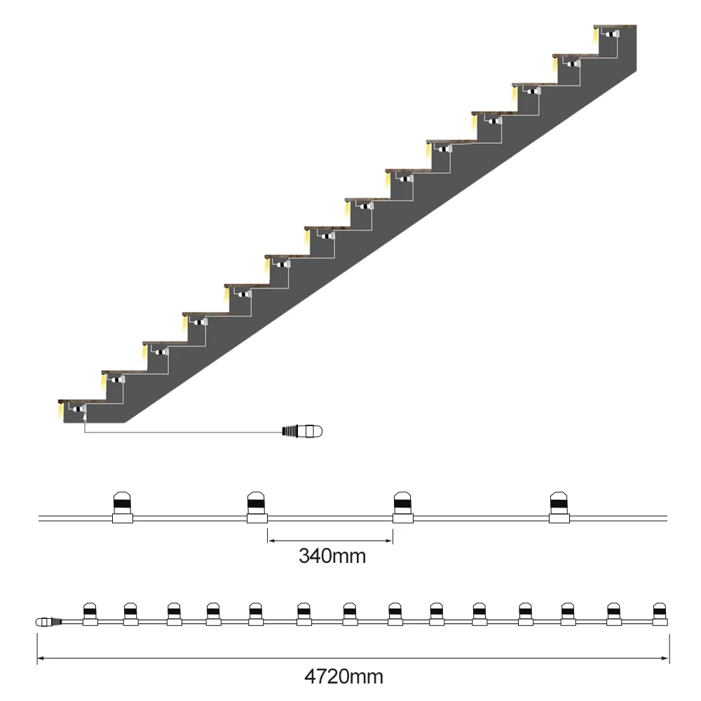 15 шагов, теплый белый свет, 0,5 м, система освещения лестницы со с...