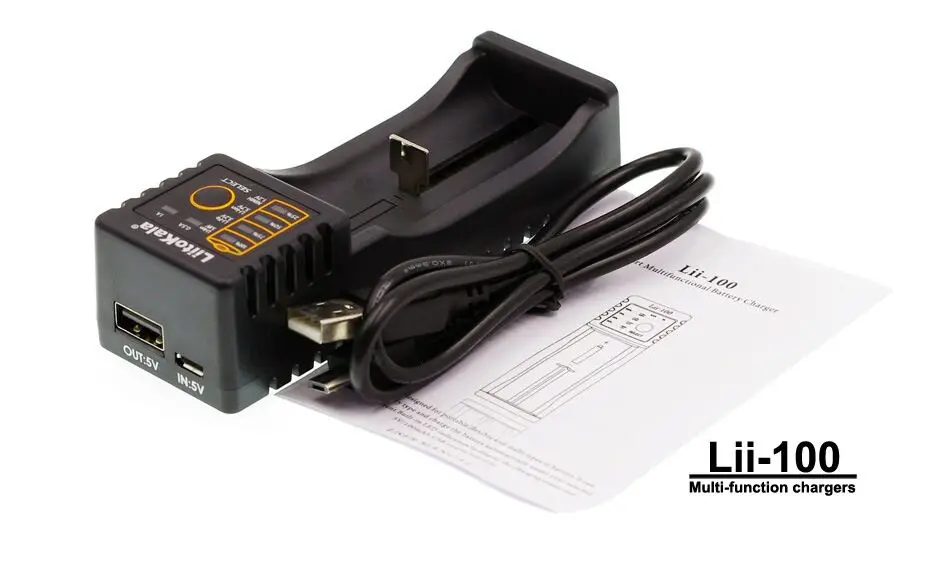Вход: Micro USB DC 5V/2AВыход: 1,4 V, 4,2 V ± 0,05 V, 3,65 ± 0,05 V, 4,35 ± 0,05 VВыходной ток: 500/1000 мАчПостоянное напряжение зарядки, Ток Отключения: < 100 мАчТок в режиме ожидания:<15 мАчФункция выхода USB:Выходное напряжение без нагрузки USB: 4,90-5,30 вВыходной ток: 1000 мАч (1A)Ток без нагрузки: < 1 мА · чВыходное напряжение 4,75-5,25 в, когда ток 1000 мА · чВыход защитное напряжение: 3,0 ± 0,1 VСовместимость:Li-ion/IMR: 18650, 18490, 18350, 17670, 17500, 16340(RCR123), 14500, 10440Размер:112 мм × 60 мм × 30 мм/86 Грамм + 15 г USB кабельПримечания:Эта оплата предназначен только для зарядки Цилиндрический литий-ионный аккумулятор (3,7 V, 3,8 V), никель-металл-гидридный/никель-кадмиевый, LiFePO4 (li-ion) аккумуляторов.Пожалуйста, прочитайте эту инструкцию перед использованием; Обратите внимание на рекомендуемый зарядный ток, никогда не выбирайте неправильный зарядный токПри зарядке с адаптером 5 в USB A C рекомендуется адаптер переменного тока 2 А-токаЗарядное устройство ma нагревается во время работы в течение длительного времени, обращайтесь с осторожностью!Отключите электричество и извлеките аккумулятор из зарядного устройства при полной зарядке.Только в помещении!Отображение данных зарядного устройства только для справки; Пожалуйста, обратитесь к профессиональным испытательным инструментам, если вам нужны точные данные.Посылка включает:Зарядное устройство Liitokala - Lii202-1 шт.1 х USB кабель1 x инструкции Liitokala - Lii202