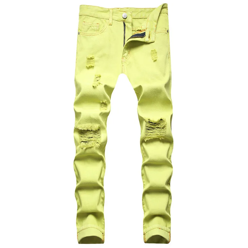 Джинсы мужские неоновые, прямые, рваные, зеленые, желтые, розовые