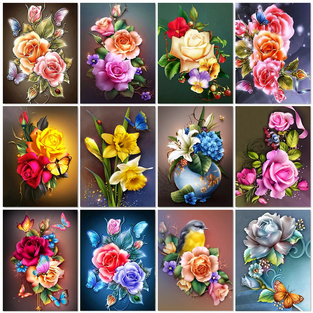 5D алмазная живопись сделай сам, картина с цветами, алмазная вышивка, Бабочка, роза, Набор для вышивки крестиком стразы, мозаичная стена, домашний декор, подарок