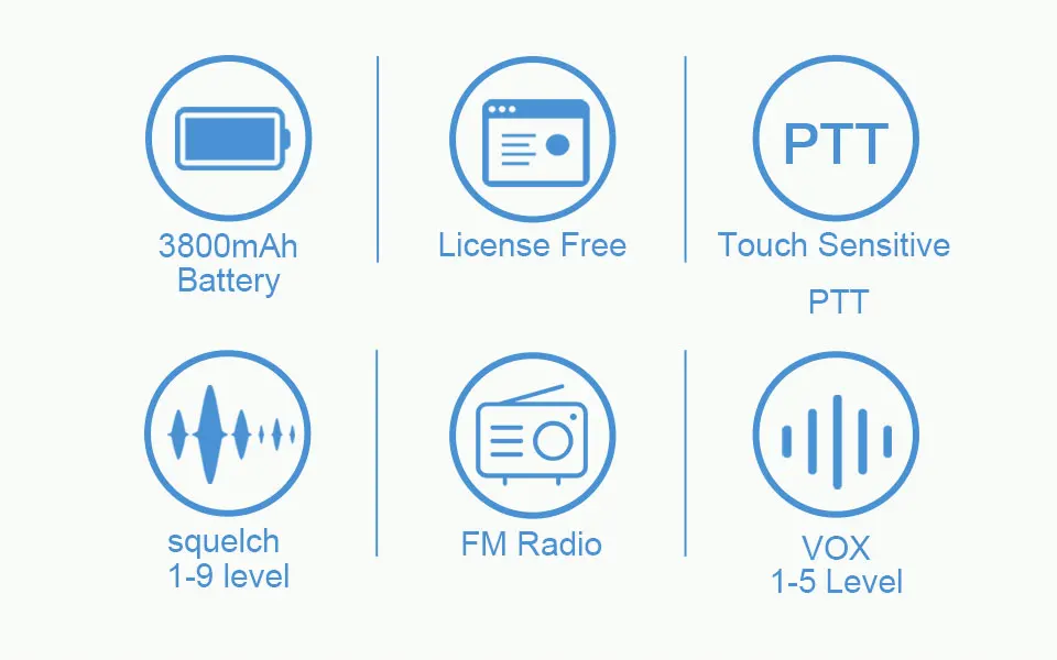 Main functionFlashlight / Alarm function / VOX /Scan/ Squelch