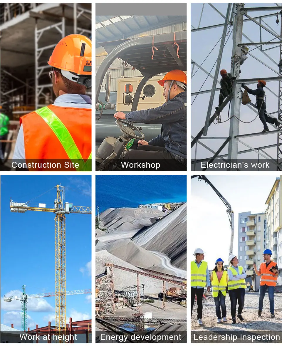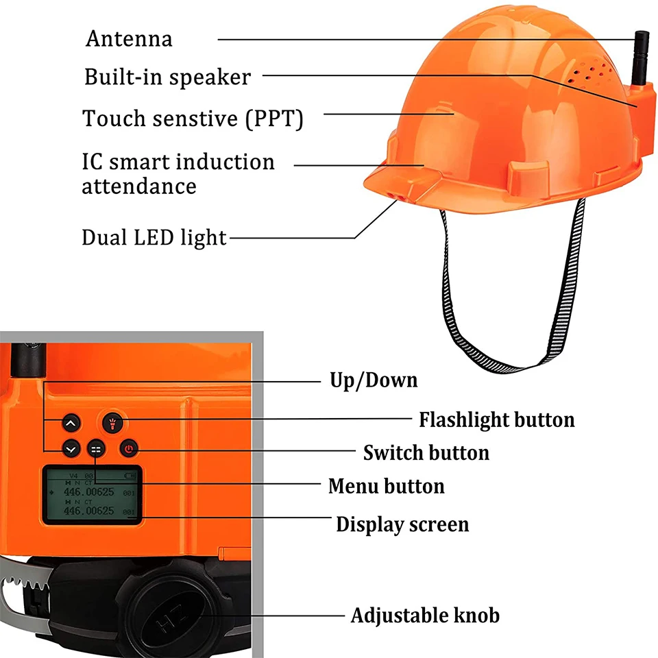 1. Скрытая система внутренней связи, долгое время ожидания до 130 ч.2. Высококачественные динамики, чистое качество звука.3. Кнопка запуска сенсорного управления (PTT).4. Микрофон с шумоподавлением, отклонение шума.5. Двойной светодиодный фонарик.6. Один ключ нажмите аварийный сигнал.7. Наружное предупреждение о сверхвысокой температуре.8. Шлем обшит тесьмой, фиксируется в четырех местах, вращается для регулировки диаметра крышки, легко фиксируется с помощью ремней, и удобно.9. Шлем изготовлен из высокопрочного АБС инженерного пластика, который обладает хорошей ударопрочностью и защищает голову от травм.10. Встроенный чип RFID, может использоваться с бесконтактным интеллектом, реальным именем посещаемости и другими многофункциональными приложениями (необходимо приобрести дополнительное активное идентификационное оборудование для поддержки использования).11. Дополнительная Прозрачная защитная маска, шаль, ветрозащитная, Пылезащитная и огнеупорная (необходимо приобретать отдельно).