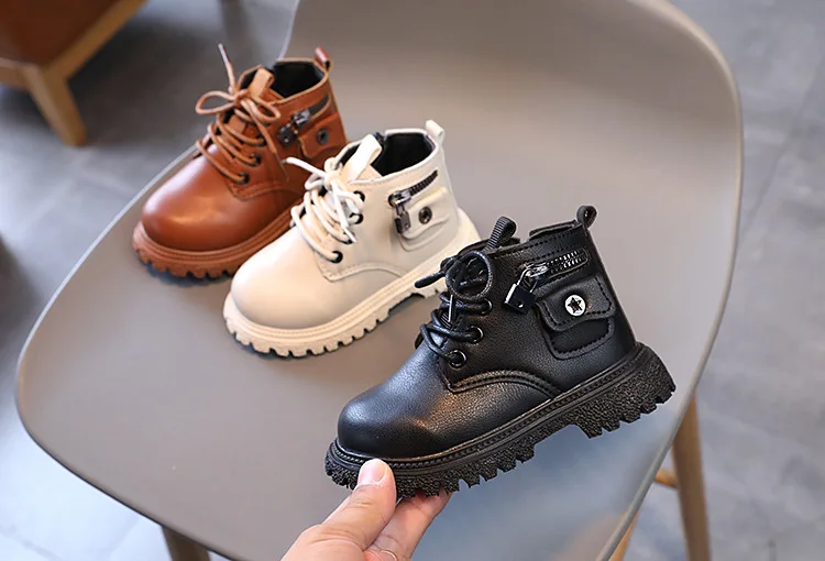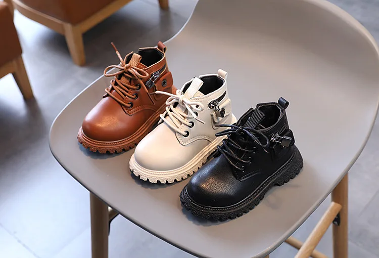 Детская повседневная обувь, Осень-зима, Ботинки Martin, модная кожа...