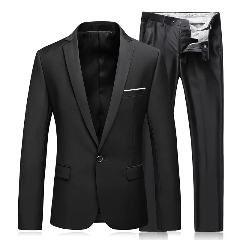 Мужской деловой костюм джентльмена, черный костюм из 2 предметов, пиджак и брюки, классические брюки, 2021