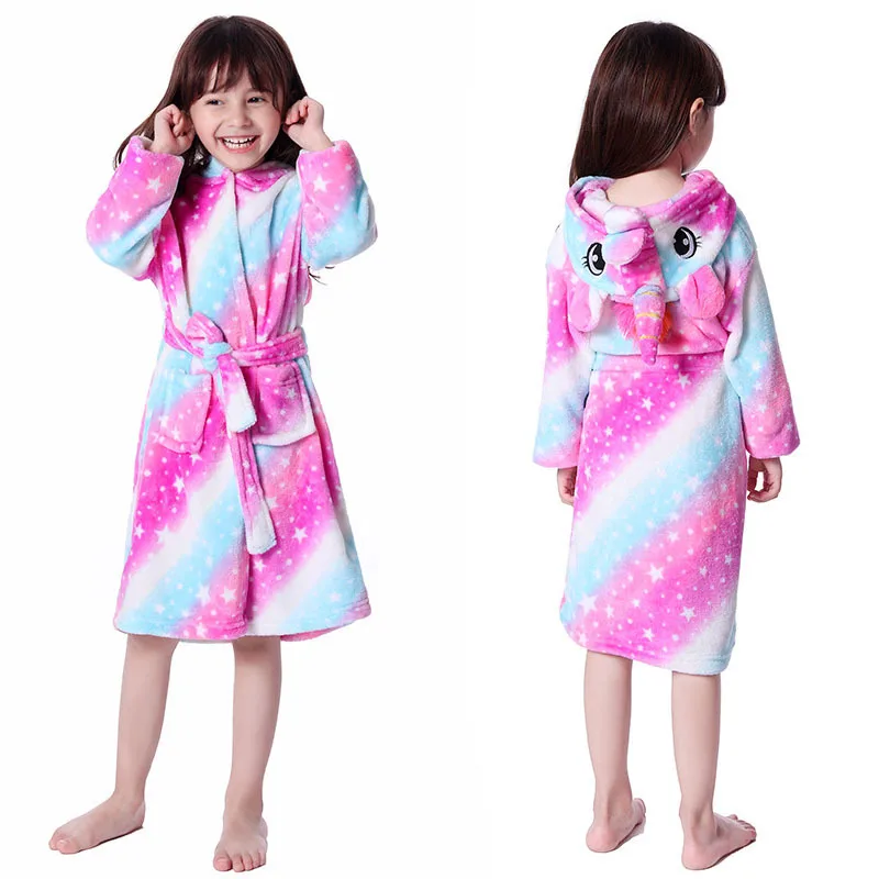 Зимний фланелевый Халат с единорогом для девочек, пижамы, детские халаты с капюшоном и изображением животных, одежда для сна для мальчиков, детский халат, детские ночные рубашки