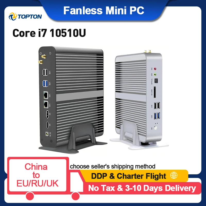 Мини-ПК Topton без кулера Intel Core i7 10510U 10710U i5 8265U Настольный микрокомпьютер Nuc 2 * DDR4 M.2 + Msata + 2,5 ''SATA 4K HTPC неттоп