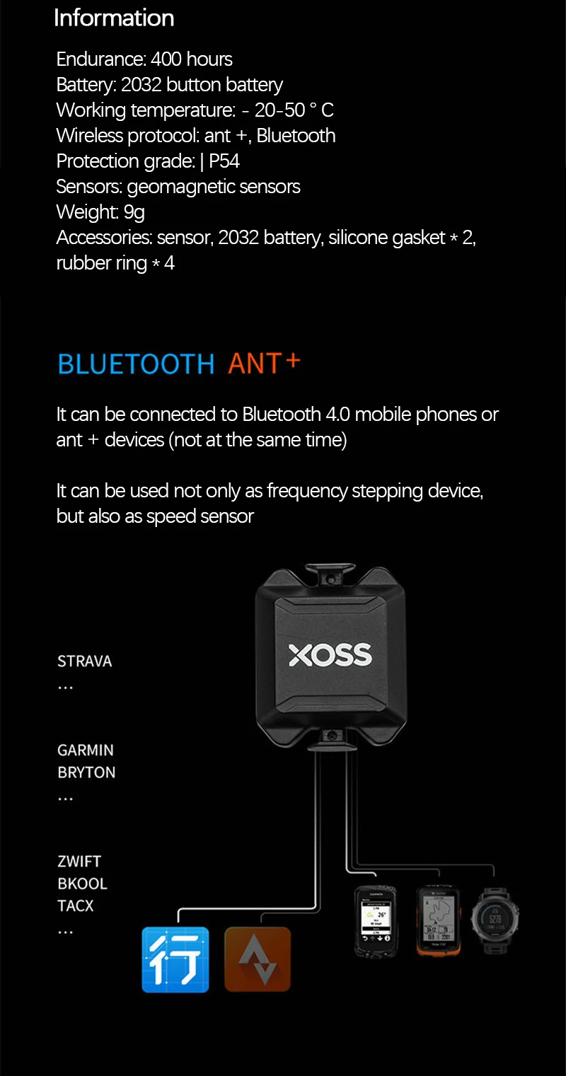 Компьютер XOSS для велоспорта, спидометр iGPSPORT, датчик частоты вращения педалей, двойной датчик, ANT + Bluetooth, датчик горного велосипеда для iGPSPORT, bryton, Garmin