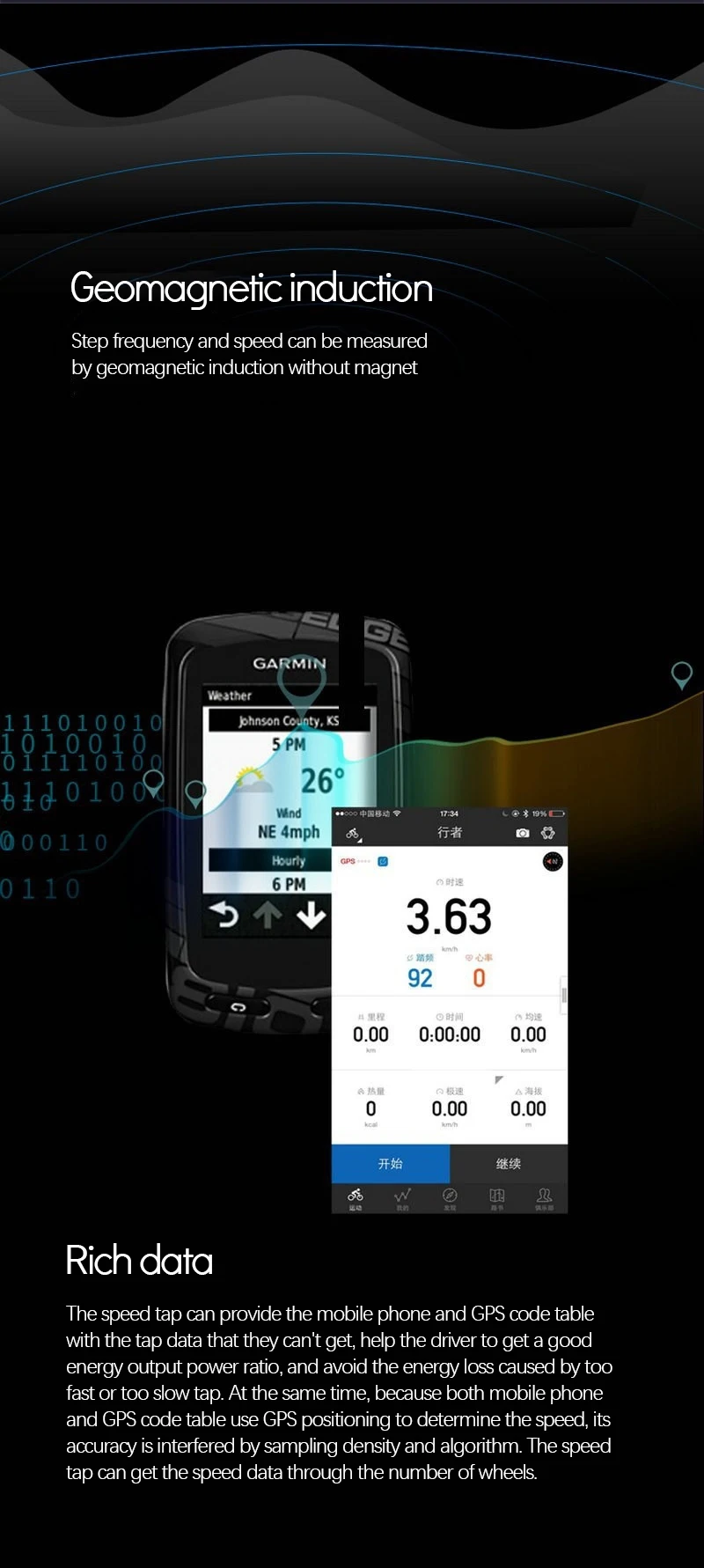 В режиме Bluetooth данные о скорости и частоте касания не могут быть подключены одновременно.
