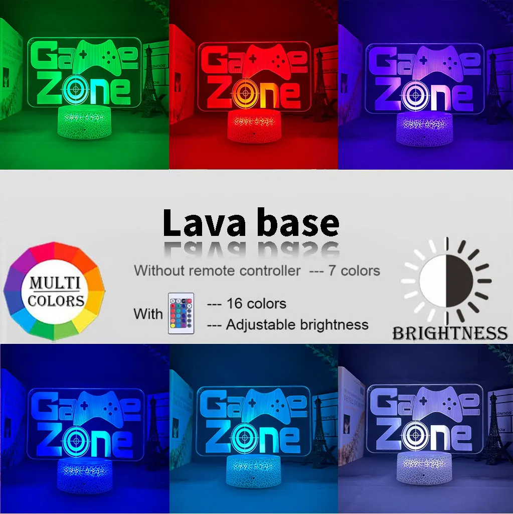 Акриловый светодиодный ночсветильник 3D для игровой комнаты, настольная игра с логотипом зоны, 16 цветов, изменение цвета, USB, украшение для детской спальни, игрушки в подарок