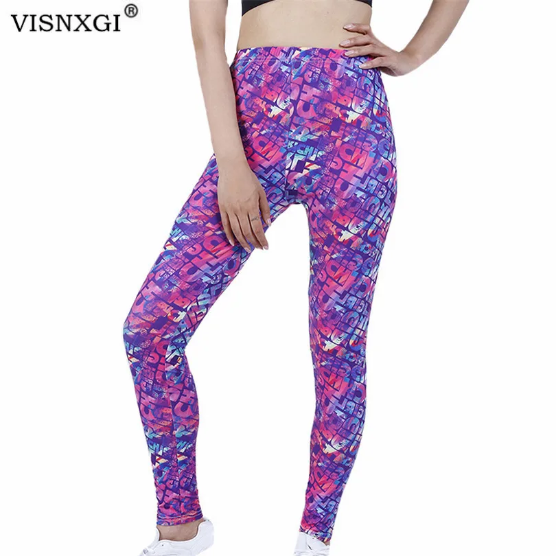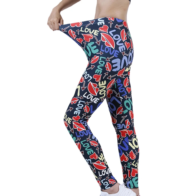 Женские леггинсы с принтом букв и пуш-ап, из полиэстера