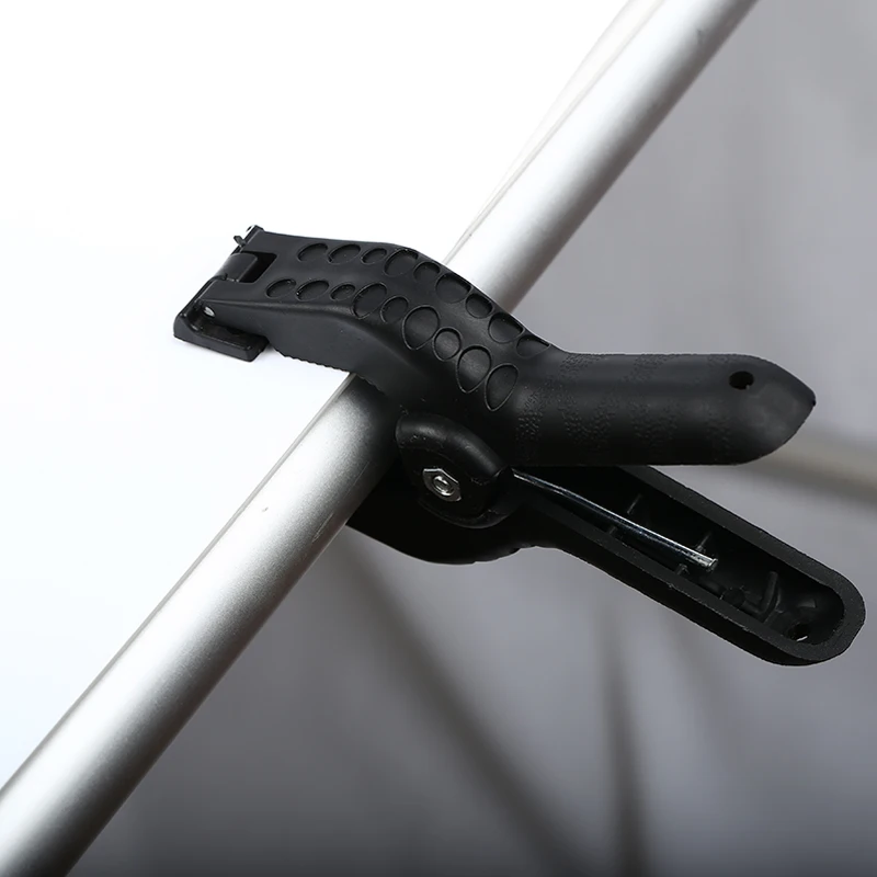 Особенности:1. Сверхмощный муслиновый зажим с твердой рукояткой.2. Используется для обрезки бумаги, холста и муслина на перекладину.3. Изготовлен из жесткого пластика.4. Зубчатая область под концами челюсти надежно удерживает круглые предметы.5. Вращающиеся челюсти удерживают нестандартные предметы.6. Специальная дизайнерская ручка обеспечивает удобное сцепление.7. Подходит для большинства стендов.Характеристики:1. Цвет: черный2. Максимальная вместимость челюсти Inne: около 60 мм3. Количество: 12 шт.