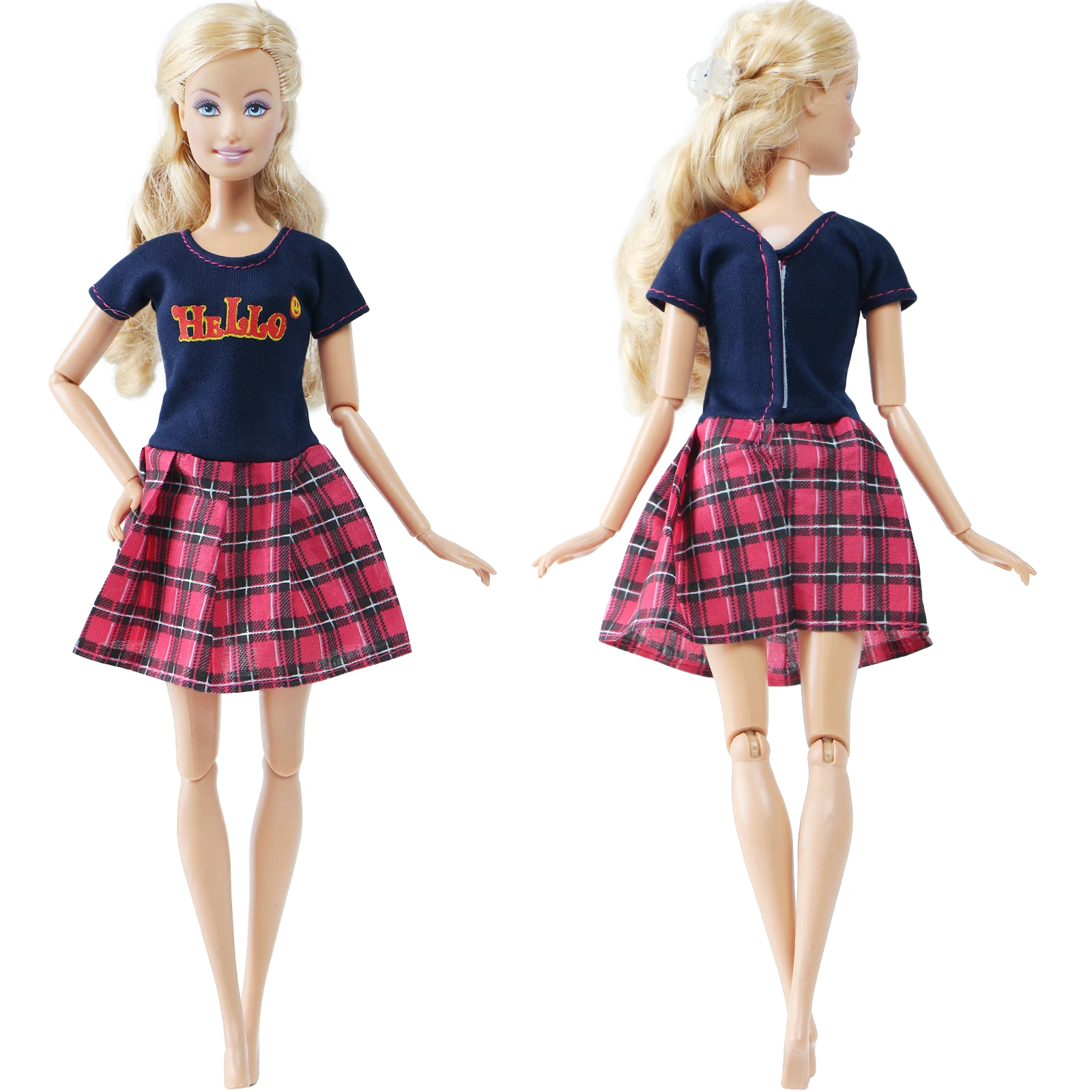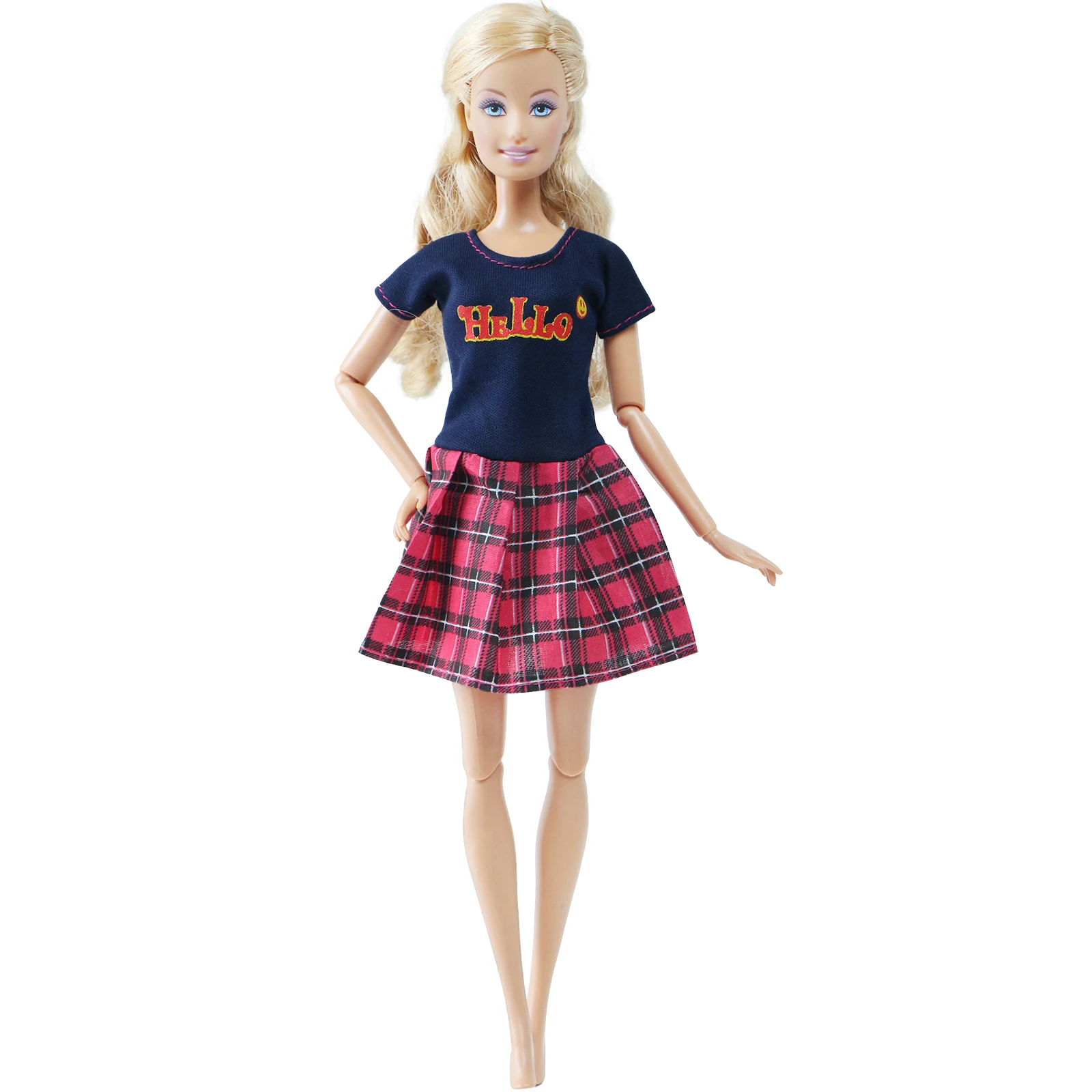 Шарнирная Студенческая одежда BJDBUS, Классическая клетчатая юбка, повседневное мини-платье, наряд, аксессуары, Одежда для куклы Барби