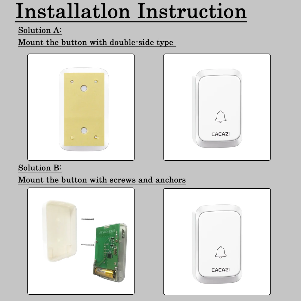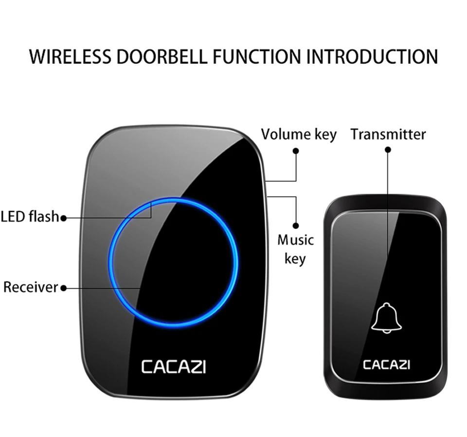 Беспроводной дверной звонок CACAZI с батарейным питанием постоянного тока 1 2 кнопки 1 2 3 приемника 300 м удаленный умный водонепроницаемый беспроводной дверной звонок 36 колокольчиков