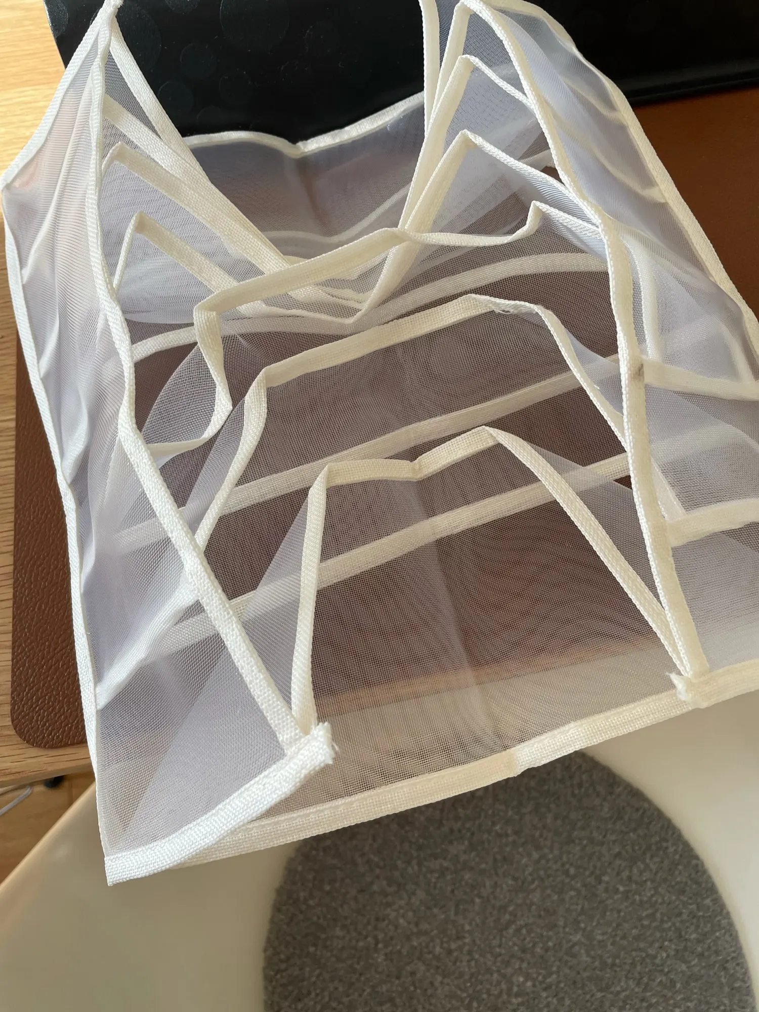 Organizator nije los, ali mi se ne svidja sto materijal nije mnogo cvrst i onda se lako presavije kada se stave brushalteri i ne izgleda lepo u fioci.