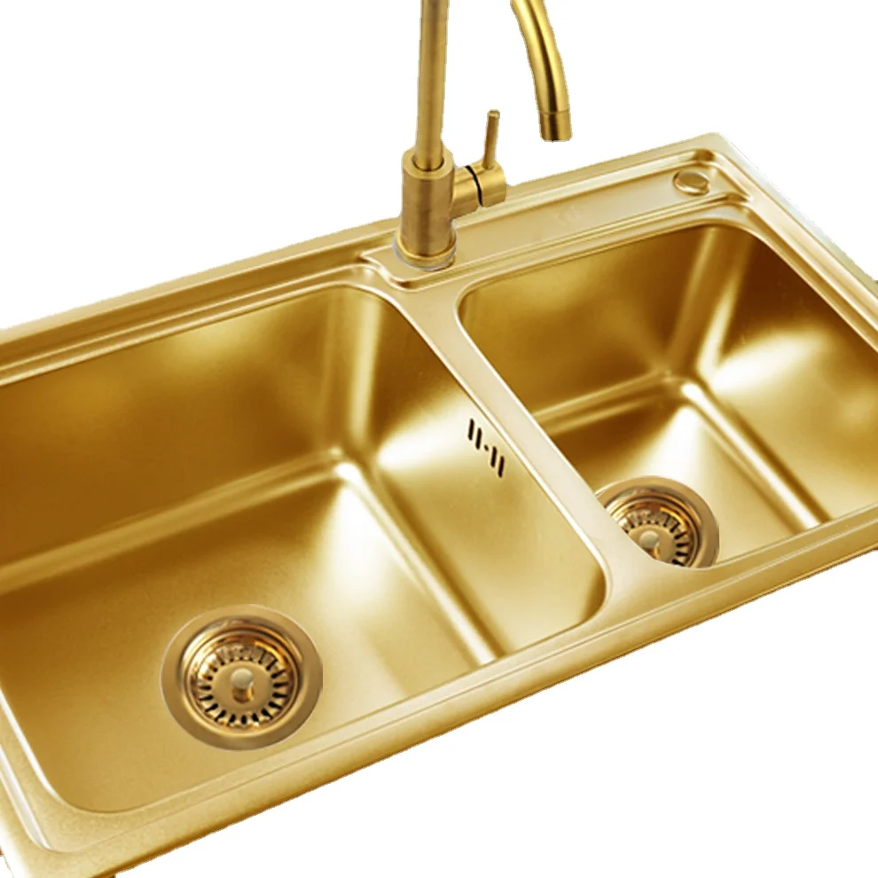 Золотая двухрядная кухонная раковина 304 дюйма, Настольная кухонная...