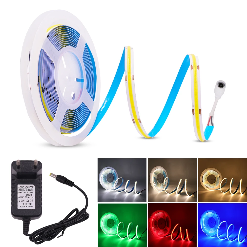 Название продукта: Диммируемые Светодиодные лампы COBБренд СВЕТОДИОДНЫЙ одного чипа: EpistarВходное напряжение: 5 В постоянного токаМощность: 5-6 Вт/мШирина печатной платы: 8-10 ммКоличество светодиодов: 320 светодиодов/мДлина полосы: 0,5 м/1 м/2 м/3 м/4 м/5 мПитание: USB-кабель (длина: 15 см) или вилка стандарта ЕСДлина резки: каждые 25 ммЦвет светильник: белый (6000-6500K)/теплый белый (3000-3500K)/натуральный белый (4000-4500K)/красный/зеленый/синийВысококачественная самоклеящаяся лента на задней частиИндекс цветопередачи: Ra>90Рабочая температура: -20 ℃-+ 45 ℃Температура хранения: -20 ℃-+ 60 ℃Угол обзора: 180 °Без светильник вых пятен и темных участков.Применение: в помещении/уличная декоративная подсветка, автомобильное освещение...