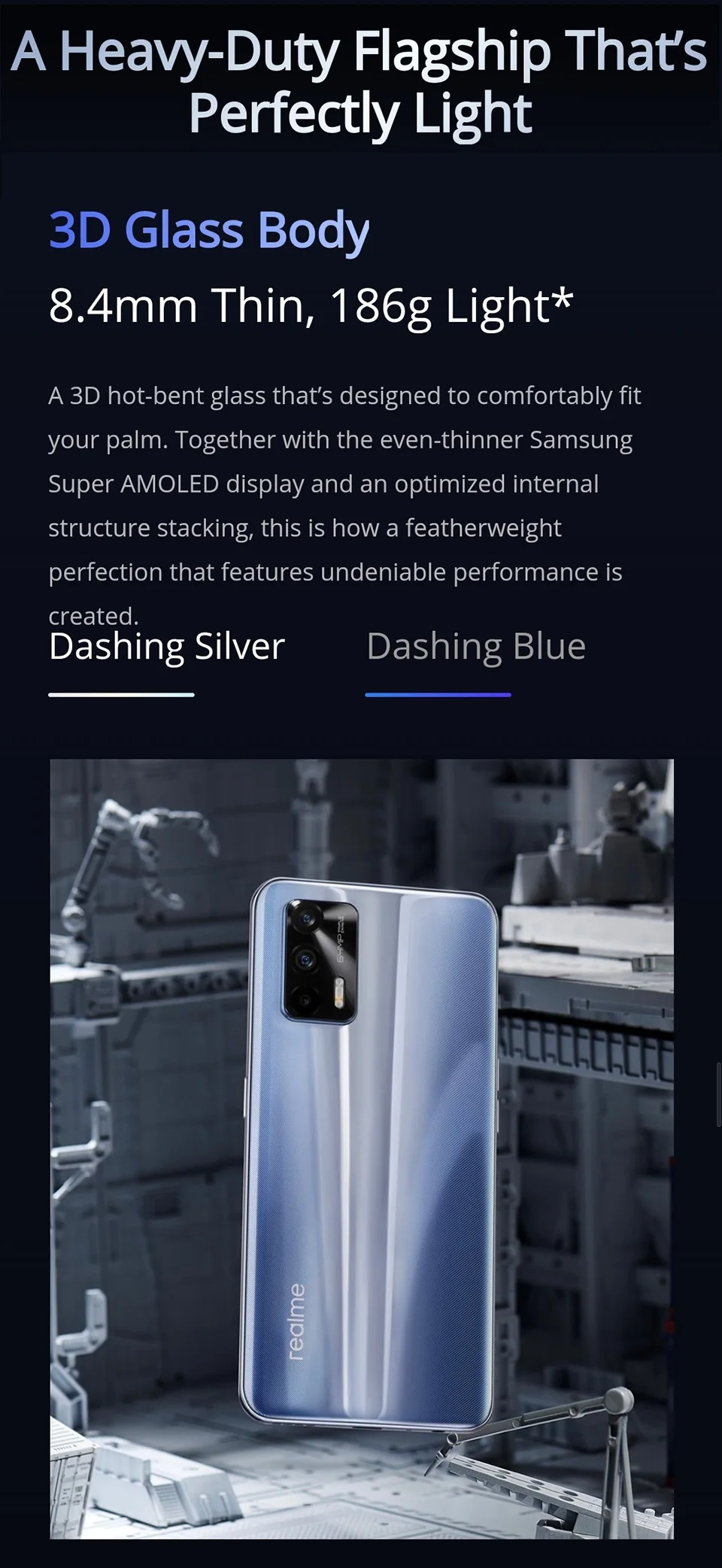 realme GT Battery4500mAh (typ), Supports 65W Super Dart charging