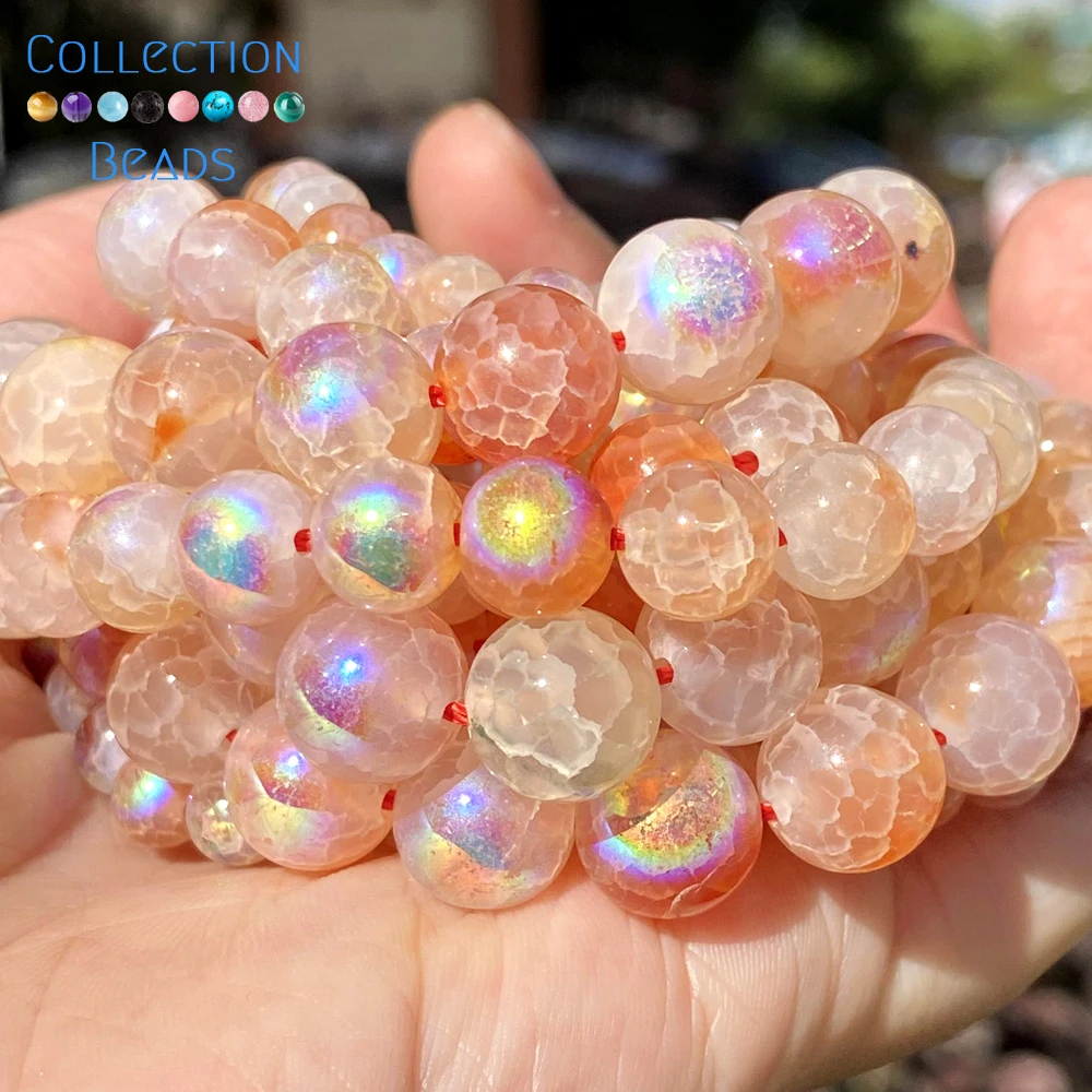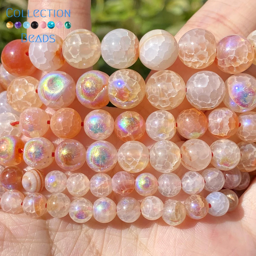 Бусины из натурального камня 6/8/10 мм, светло-оранжевые треснувшие Агаты, круглые бусины-разделители для изготовления ювелирных изделий, аксессуары для браслетов «сделай сам»