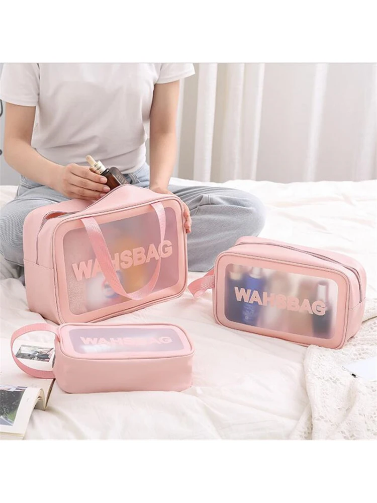 Женская сумка, портативная дорожная сумка для макияжа, прозрачная сумка для макияжа, водонепроницаемая косметичка с надписью, косметичка для ухода за кожей