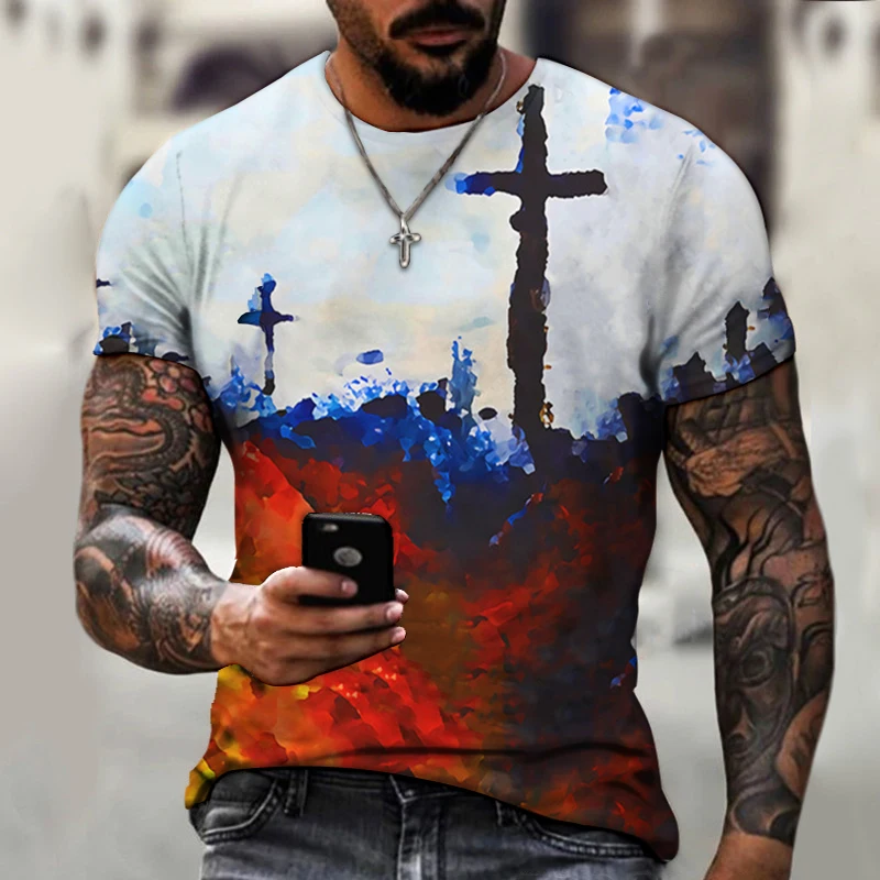 Мужская летняя спортивная футболка с коротким рукавом и 3D-принтом