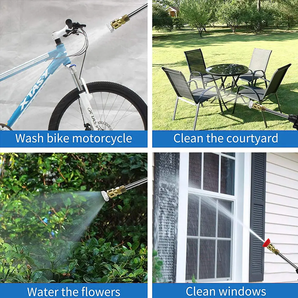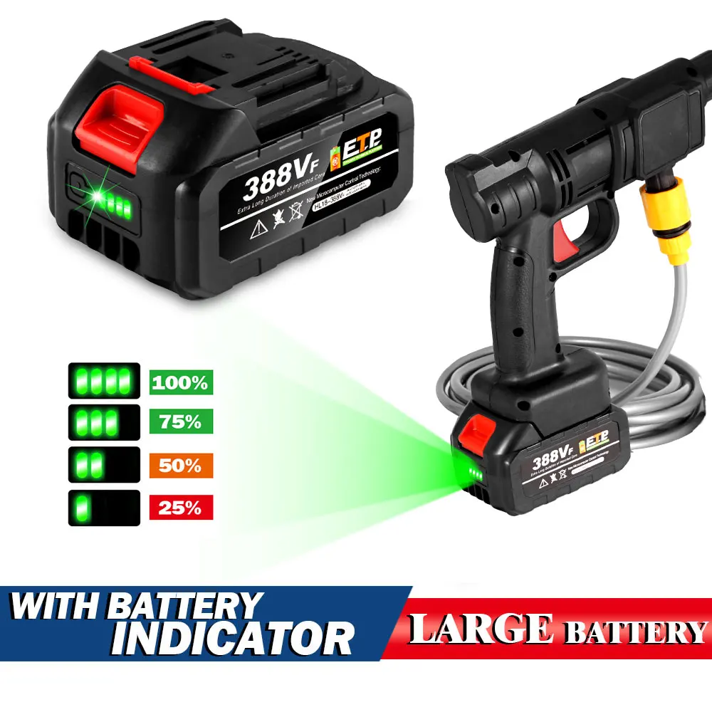-Беспроводной дизайн, питание от литий-ионной аккумуляторной батареи, удобно для работы на открытом воздухе-Высокая/низкая система управления двойным давлением балансирует время работы с давлением воды-Многофункциональная насадка с 3 распылителями для очистки питания или полива-Универсальный 1/4 "быстроразъемный фитинг для различного расширения сопла-Литиевая батарея большой емкости 5000 мА, удобная для использования на открытом воздухе-Не требуется садовый шланг, поддержка вытяжки пресной воды из ведра, бутылки, потока или бассейна