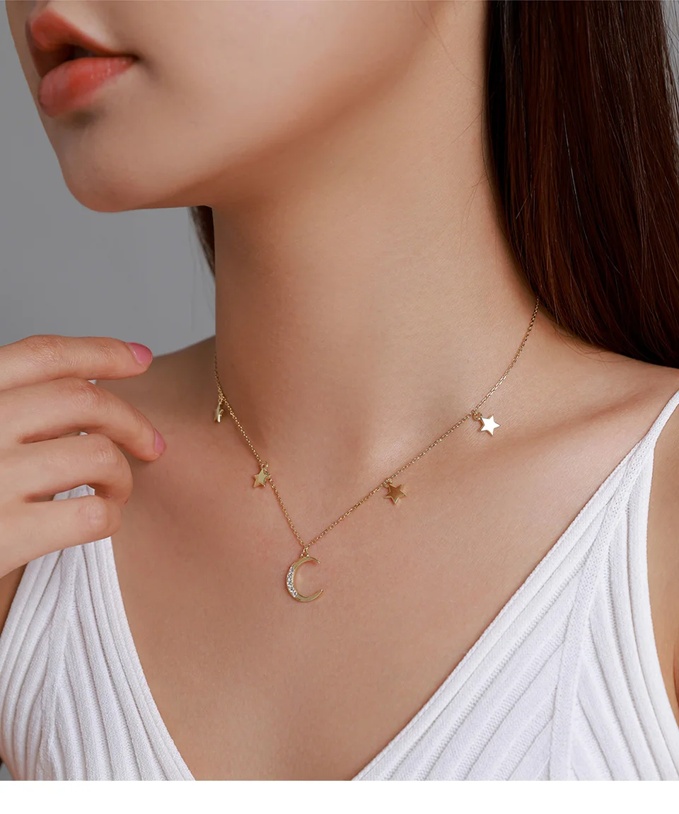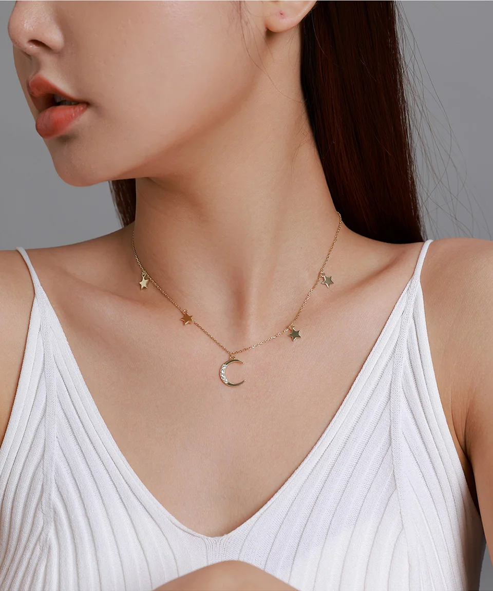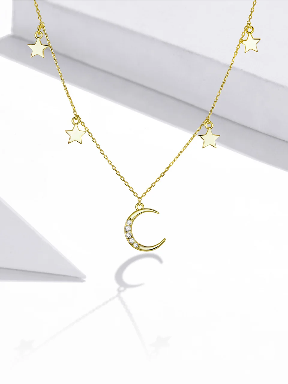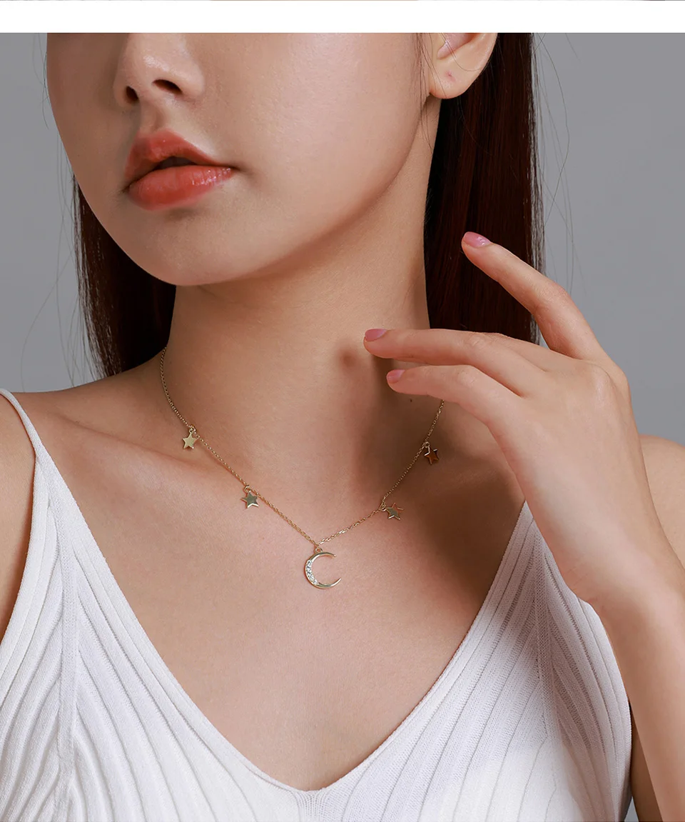 Ожерелье женское из серебра 925 пробы с подвеской в виде Луны и звезды