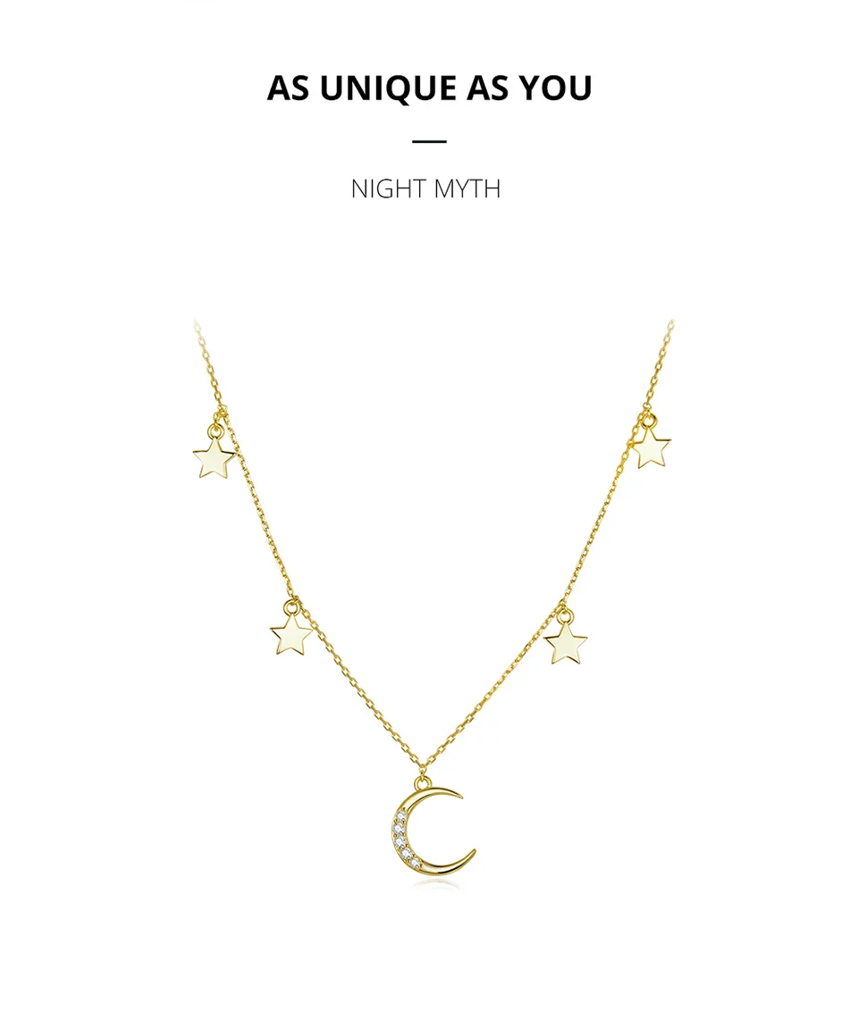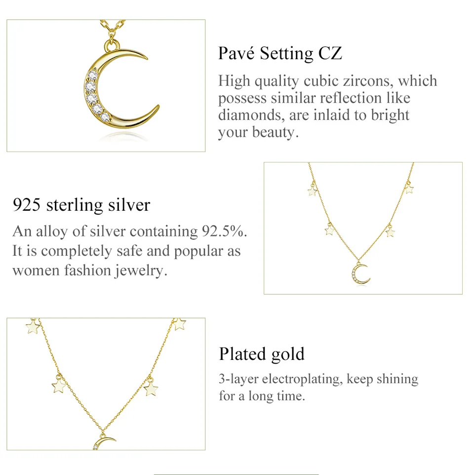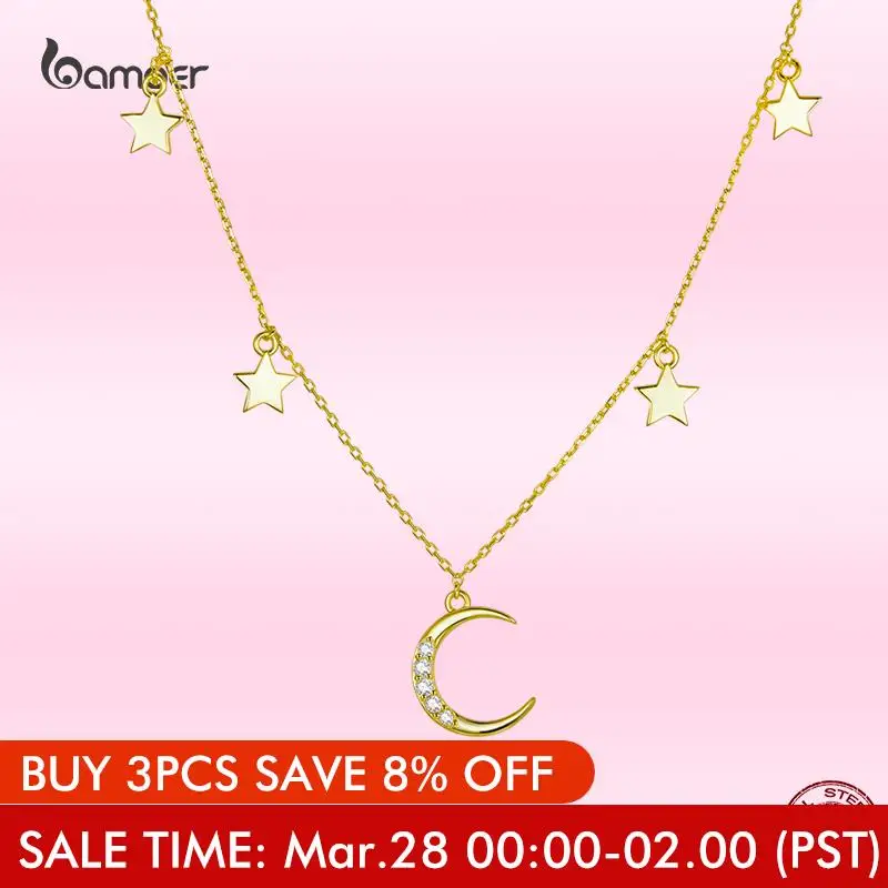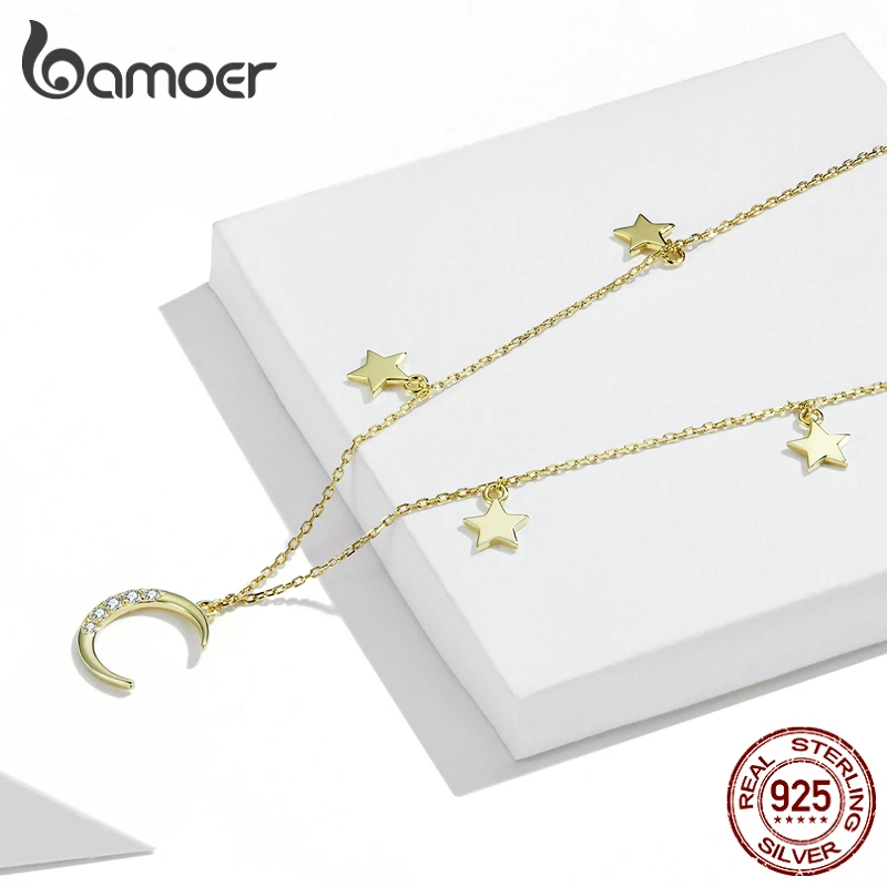 Женское мифическое ожерелье с золотыми звездами и Луной Bamoer, роскошное позолоченное 925 пробы Серебряное романтическое украшение