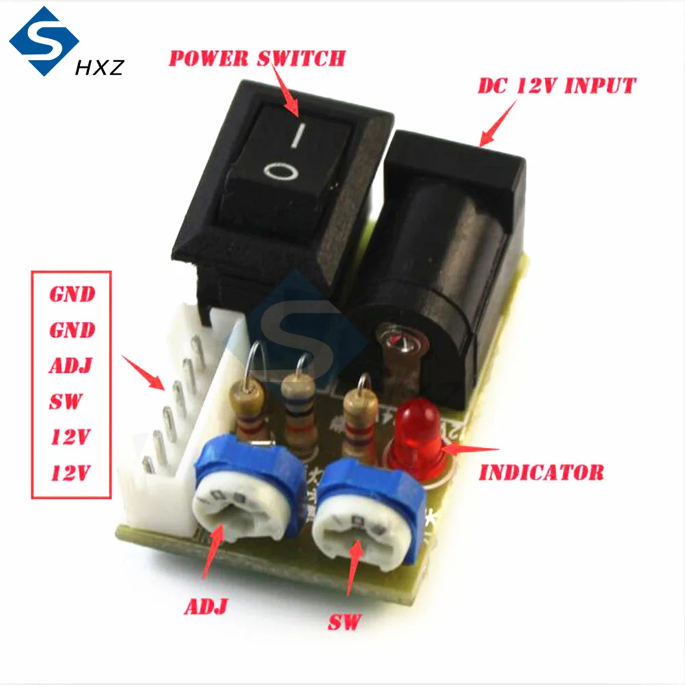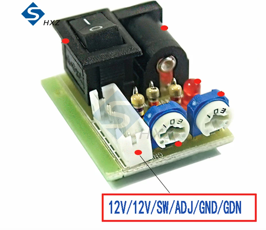 Описание интерфейса: 1. 12 В 2. 12 в 3. SW 4. ADJ 5. GND 6. GND