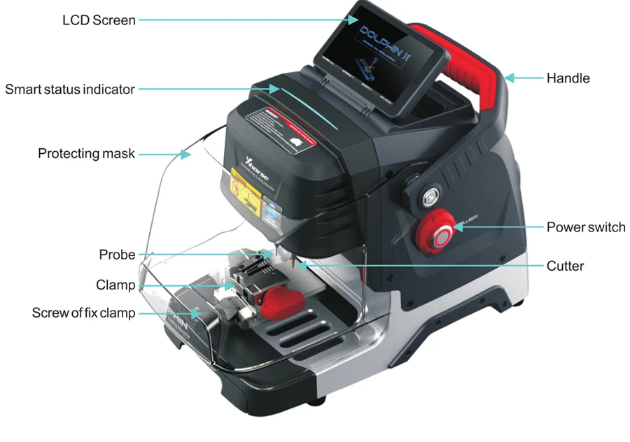Автоматическая портативная машина для резки ключей Xhorse Dolphin II XP-005L с регулируемым экраном и встроенным аккумулятором