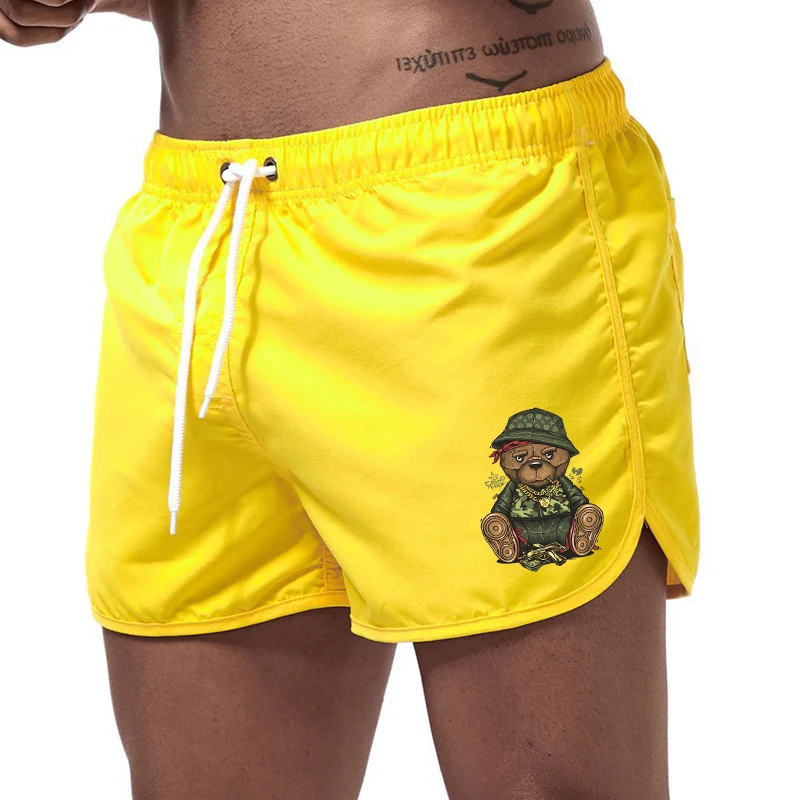 Модные мужские пляжные шорты, летние свободные дышащие шорты, популярные быстросохнущие повседневные шорты, мужские однотонные шорты с принтом