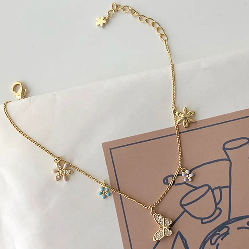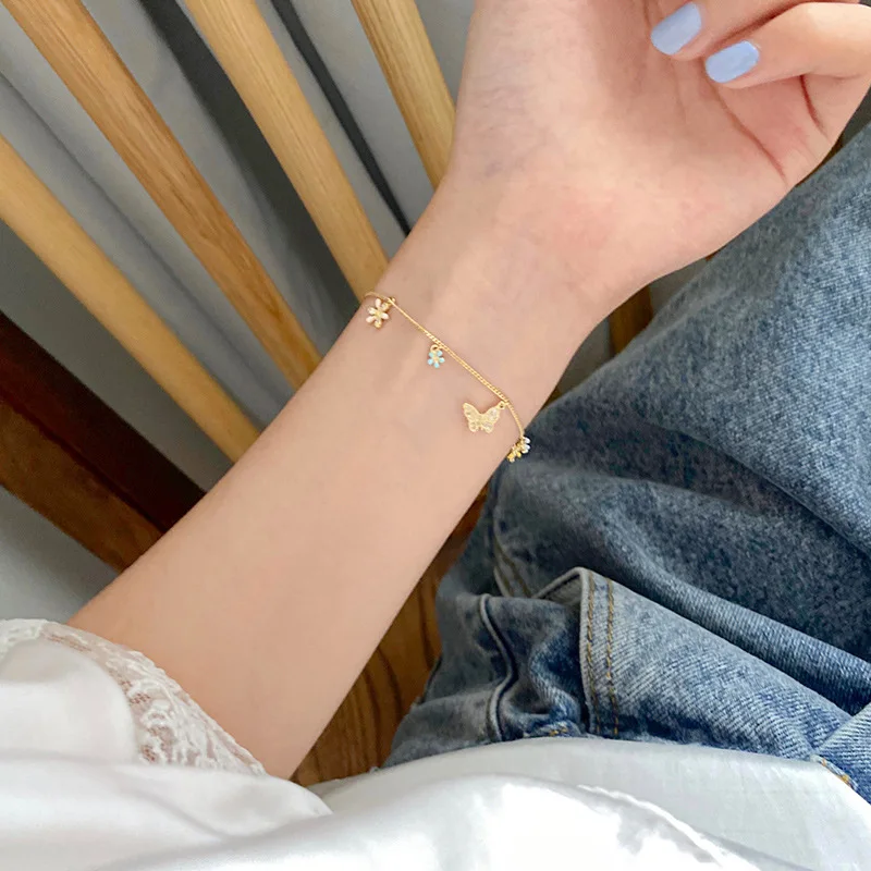 Женский браслет из циркония, универсальный браслет с цветами бабочк...