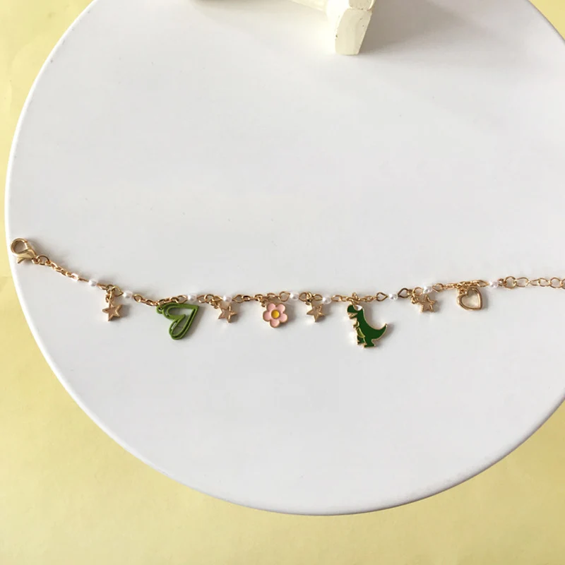 Браслет-цепочка женский геометрический, милая подвеска в виде маргаритки, животного, кота, динозавра, цветочный Шарм, Ювелирное Украшение