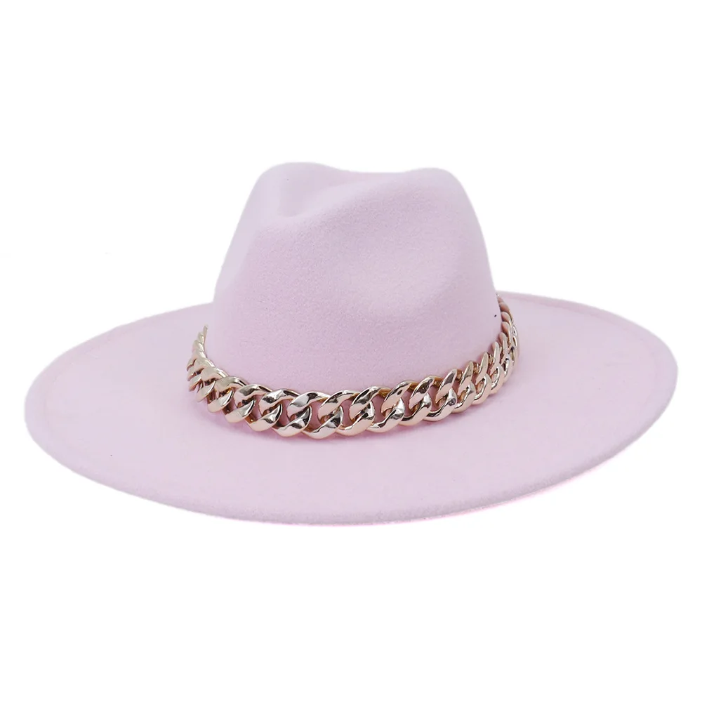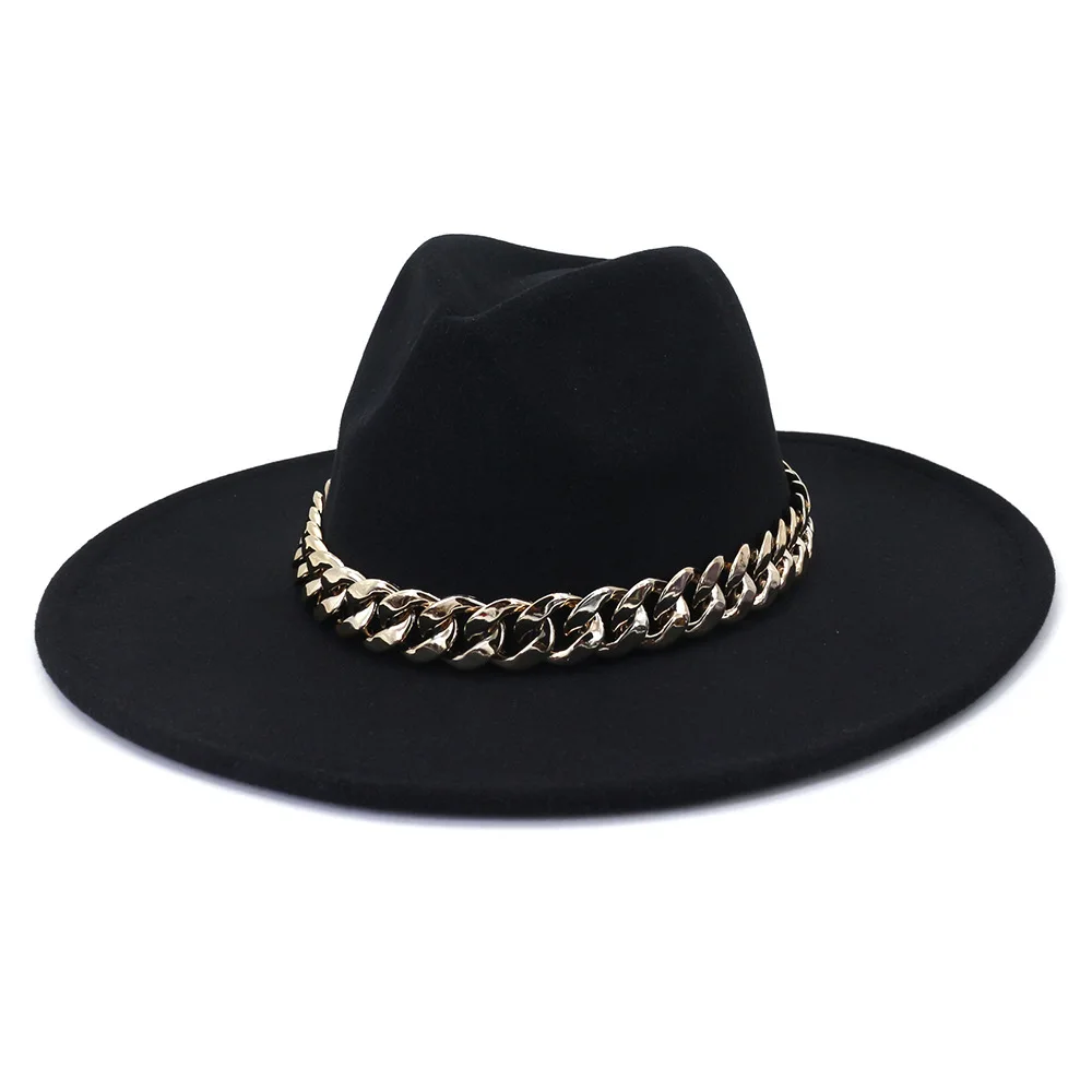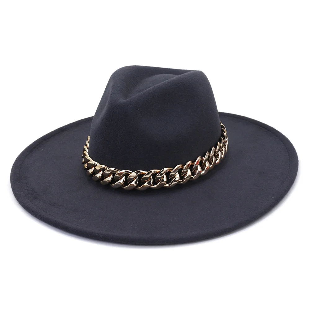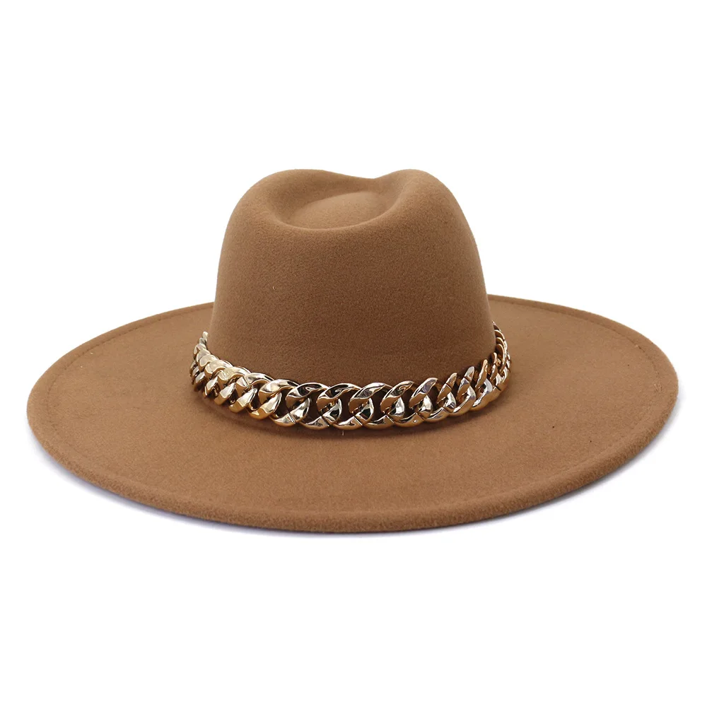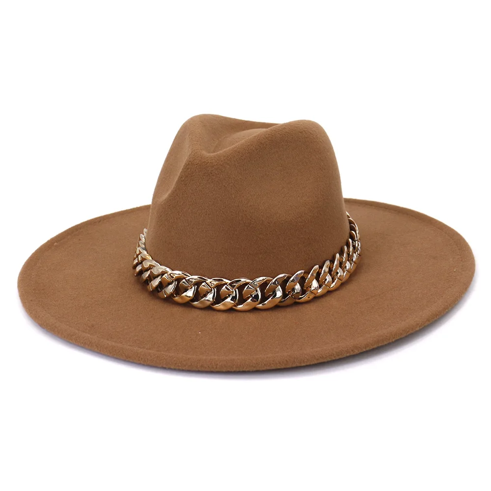 Головной убор унисекс с большой цепочкой, регулируемая шляпа в стиле унисекс с полями 9,5 см, новинка 2021, головной убор большого размера, Зимняя шляпа в стиле джаз коричневого цвета, кепка