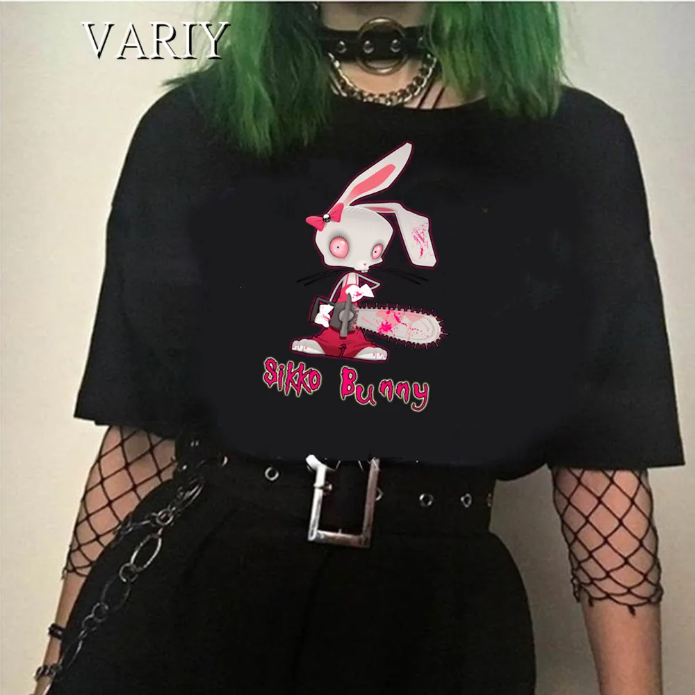 2021 топы с готическим принтом кролика y2k футболка женская уличная Эстетическая рэп хип-хоп Уличная Футболка Harajuku Kawaii женские футболки