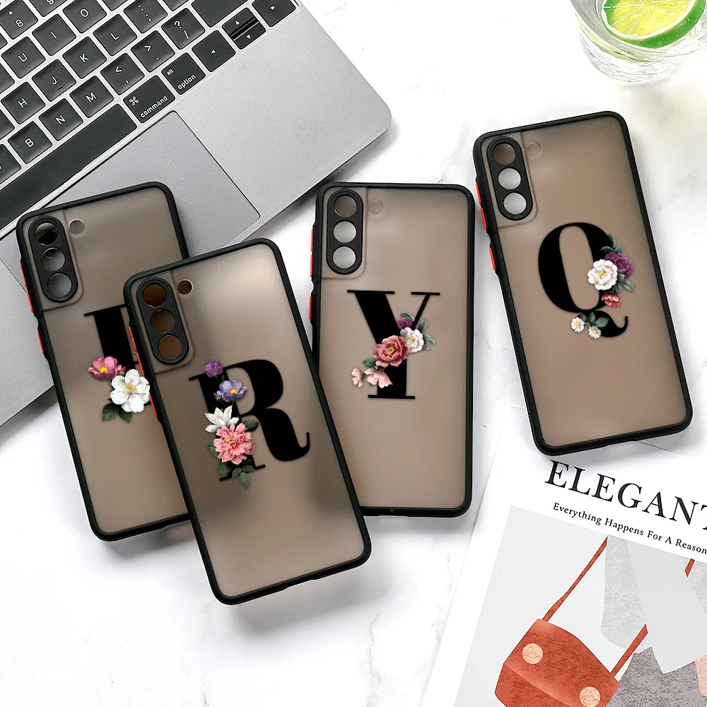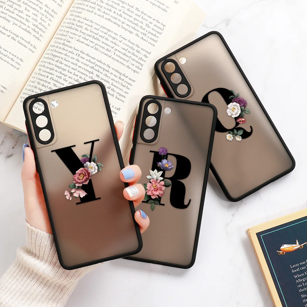 Чехол с цветочными буквами для Samsung Galaxy S21 Ultra, Жесткий Че...