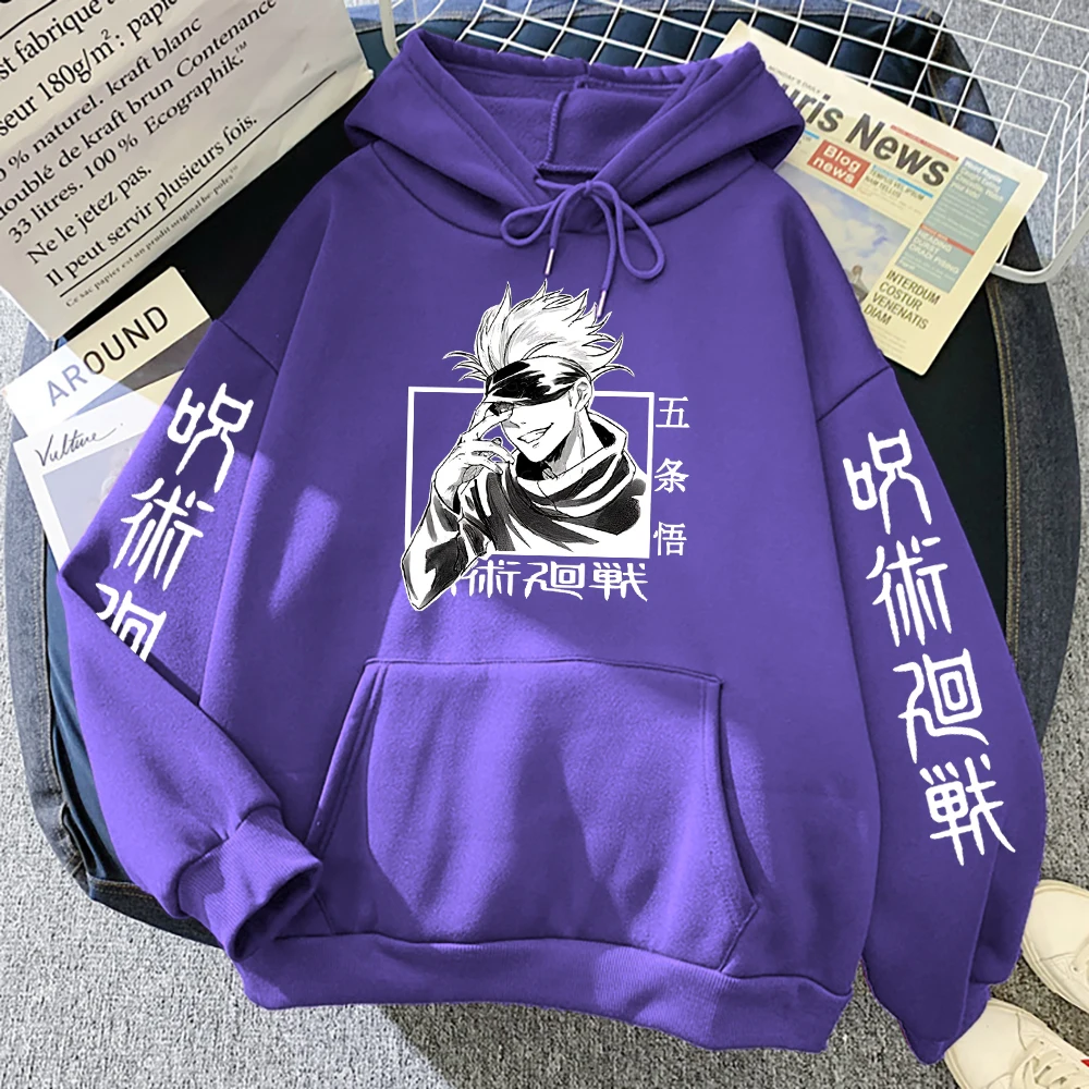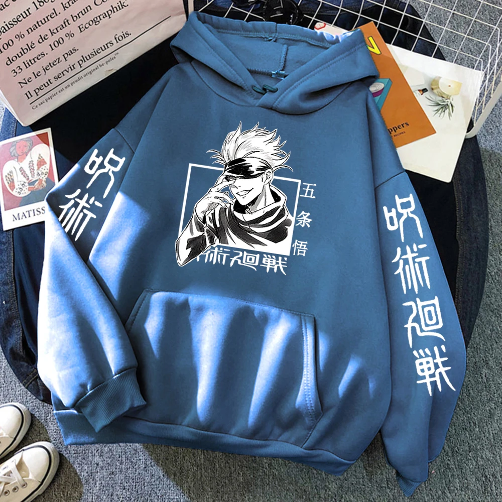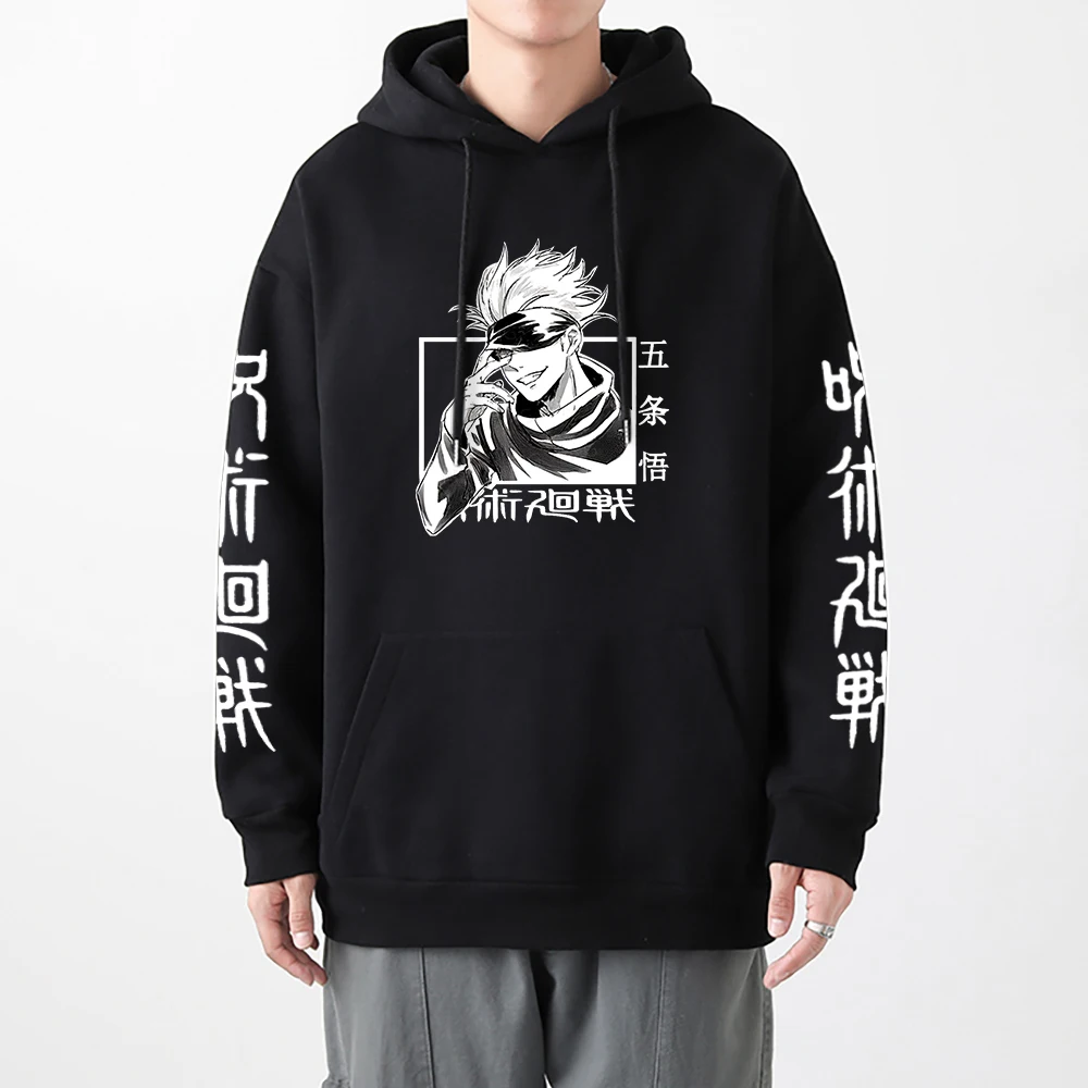 Толстовка мужская с капюшоном, худи джутсу-кайсен, аниме Джоджо Сатору, свободные толстовки в стиле хип-хоп, теплая флисовая уличная Толстовка с длинным рукавом, осень
