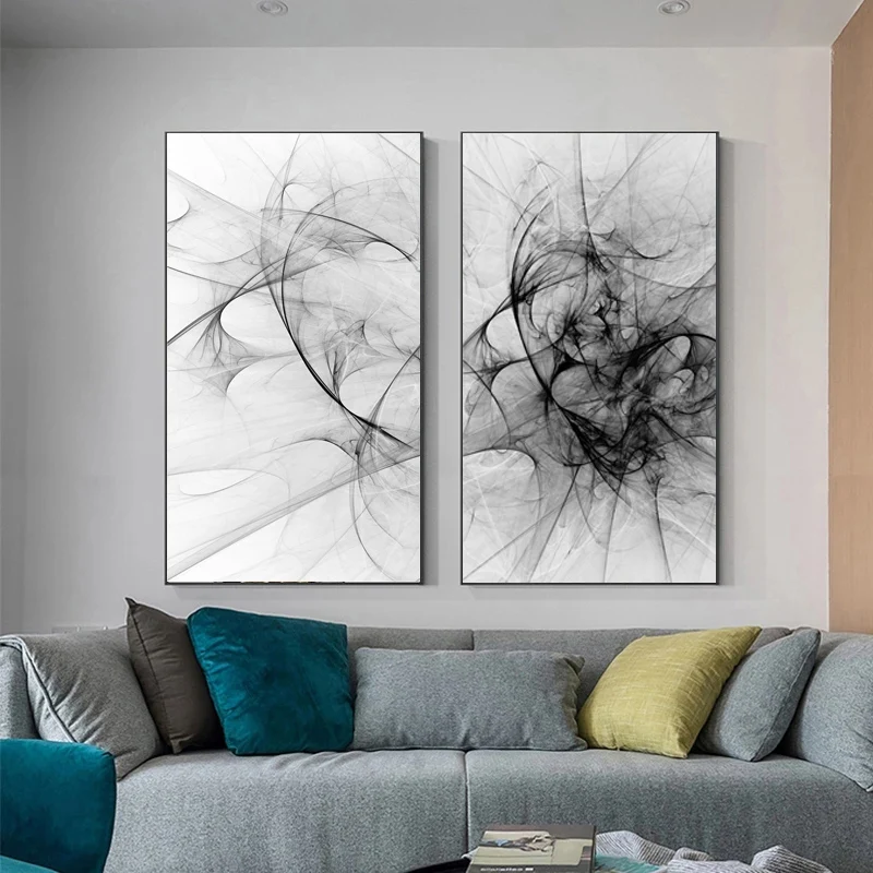 Абстрактная линия, черные и белые холщовые плакаты, фотообои, искусство, картина для гостиной, интерьер, домашний декор