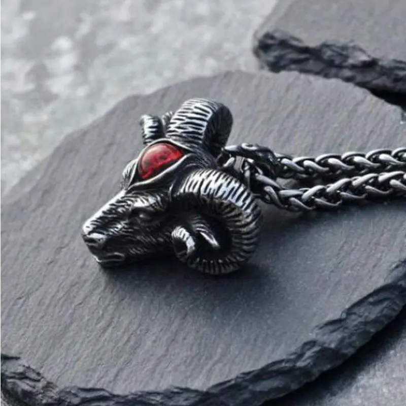 Готическое креативное мужское ожерелье с красной циркониевой головой овцы, кулон рок, вечерние локомотивы...