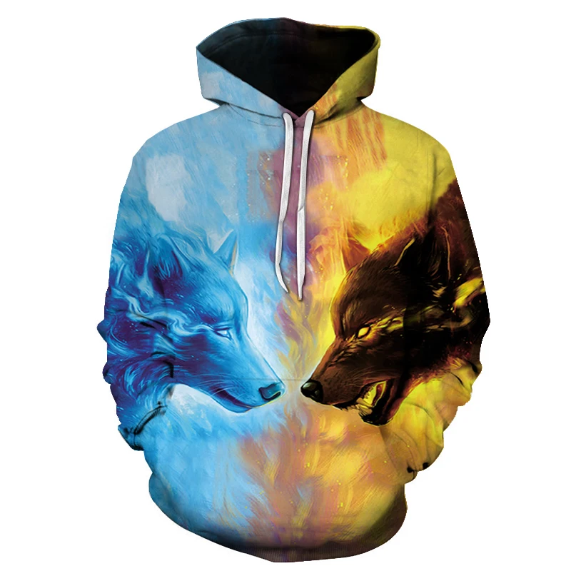 Толстовки с 3D-принтом волк для мужчин и женщин, толстовки в стиле ...