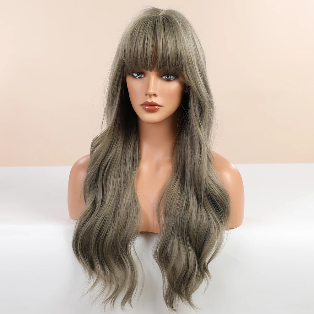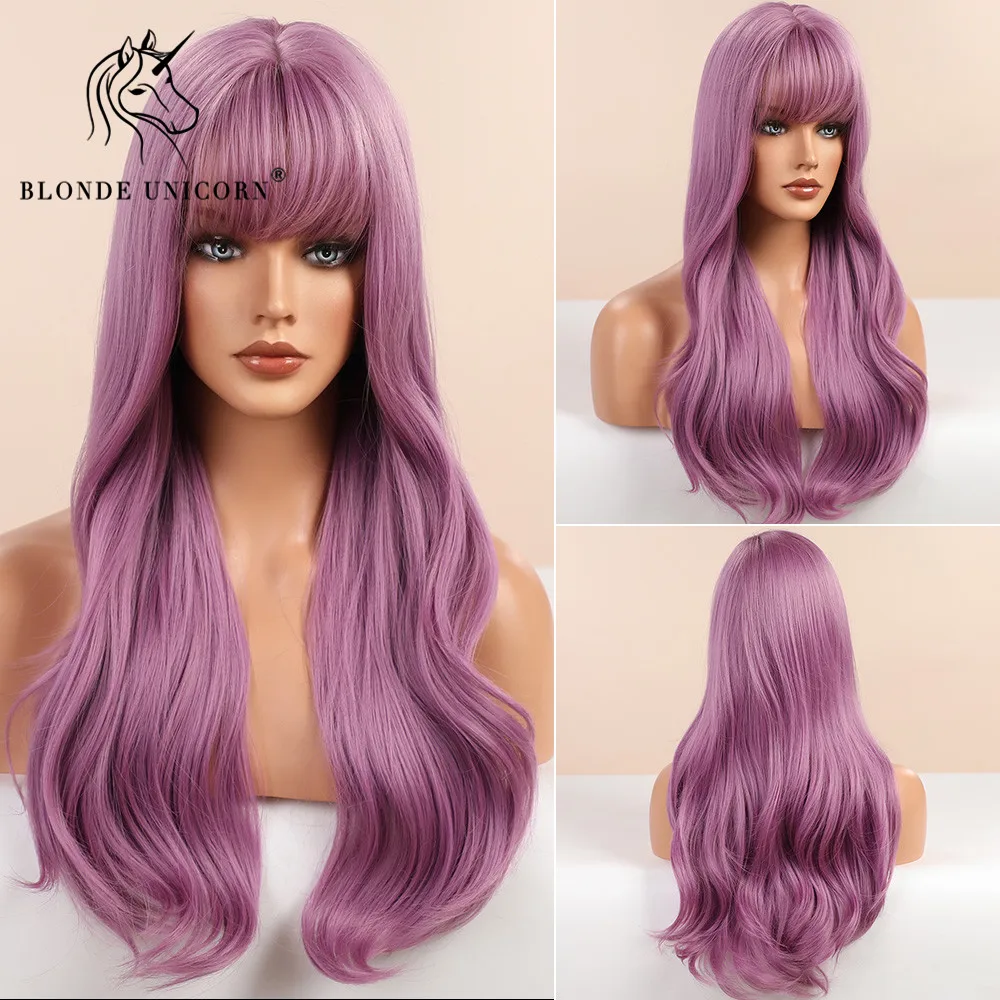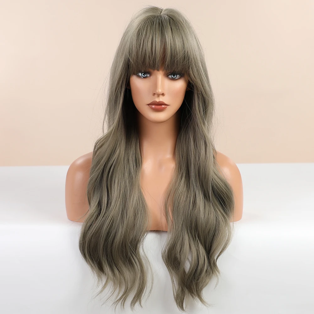 Парик из Синтетических Длинных Волнистых Волос блонд единорог, серо-синий, для черно-белых женщин, натуральные волосы с челкой, Термостойкое волокно
