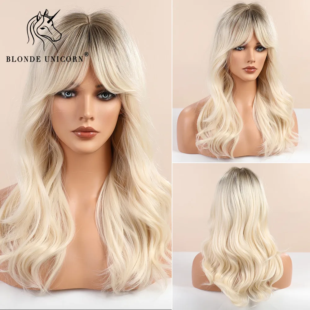 Синтетические парики средней длины блонд единорог с челкой парик из...