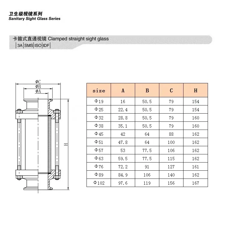 Тройной зажим 34 дюйма, 1 дюйм, 1-14 дюйма, 1,5 дюйма, 2 дюйма, 3 дюйма, стекло для визуального контроля потока, диоптрий, подходит для труб OD SUS 304, фитинг из нержавеющей стали для домашнего пивоварения