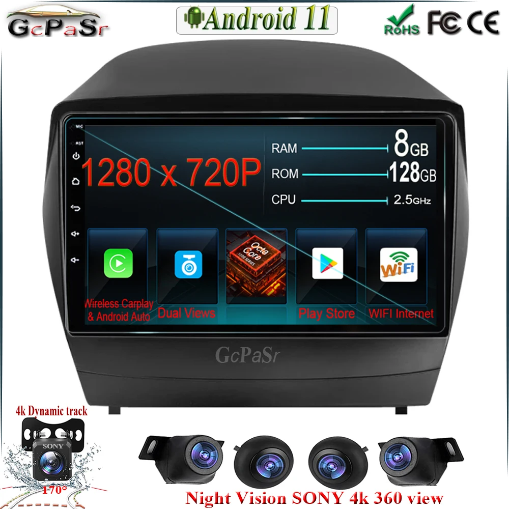 Автомобильный стерео Мультимедийный проигрыватель 360, камера для Hyundai Tucson 2 ix35 2009-2015, Android 11, GPS-навигация, BT, Wi-Fi, DSP, IPS