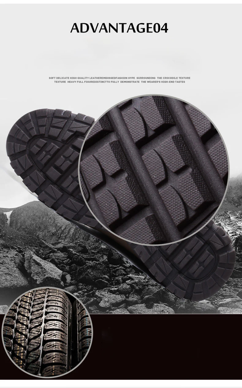Мужские кожаные ботинки, зимние водонепроницаемые ботинки на меху, ...