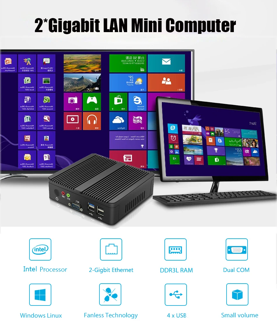 Мини-ПК YCSD без кулера, настольный мини-компьютер с Intel Celeron J1900, Win 11, Windows 10 pro, Linux, Pfsense Micro Tv